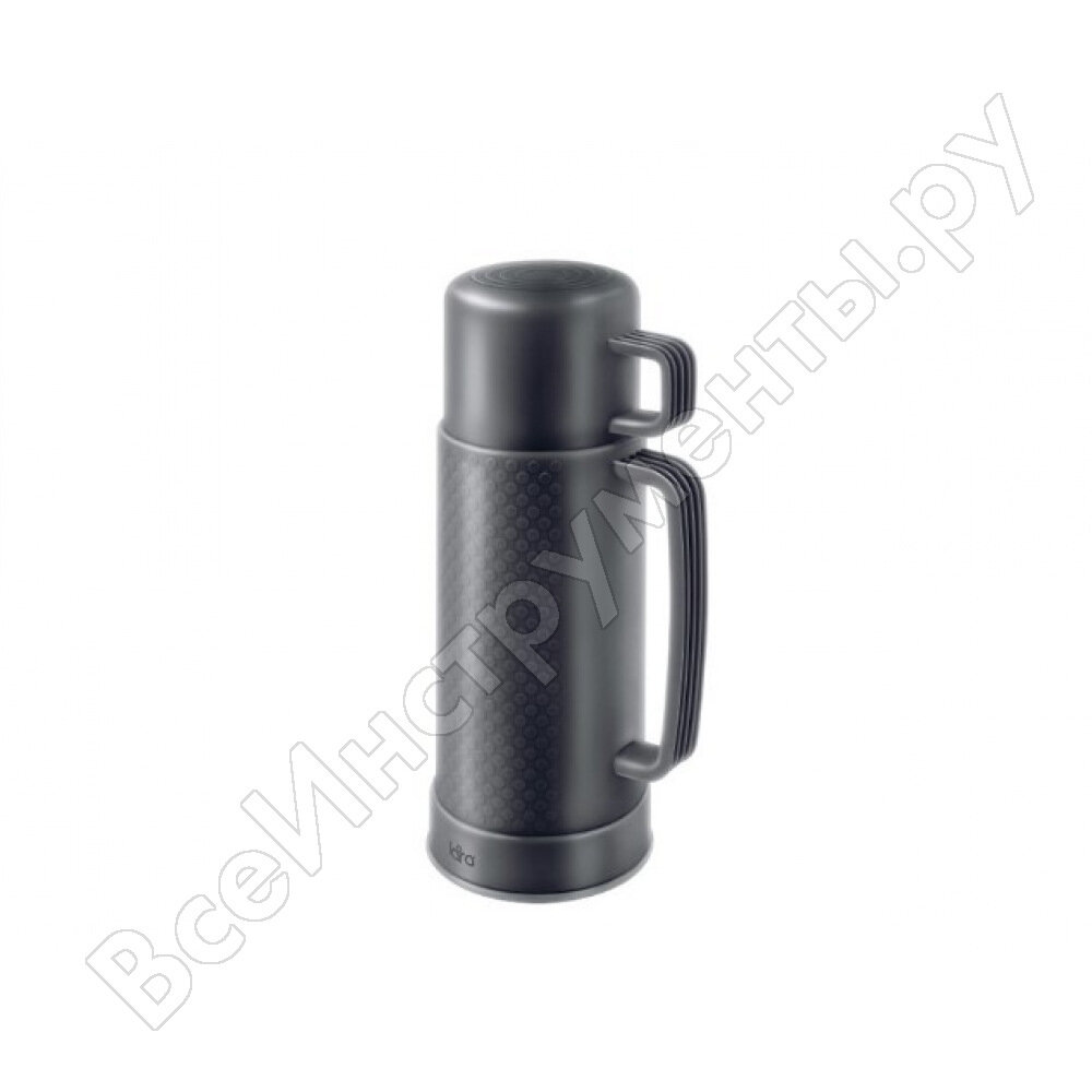 Термос LARA / лара LR04-81 с двойными стенками и ручкой, пластиковый корпус, колба из стекла серый 0.65л / термопосуда
