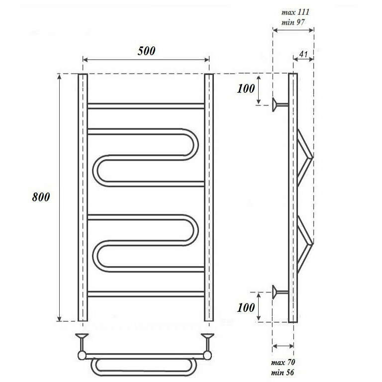 Водяной полотенцесушитель Aquanet Mauro(г2) 800x500