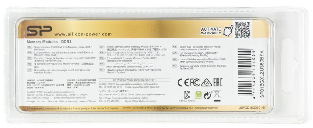 Модуль памяти Silicon Power Xpower Turbine SP016GXLZU360BSA DDR4 - 16ГБ 3600, DIMM, Ret