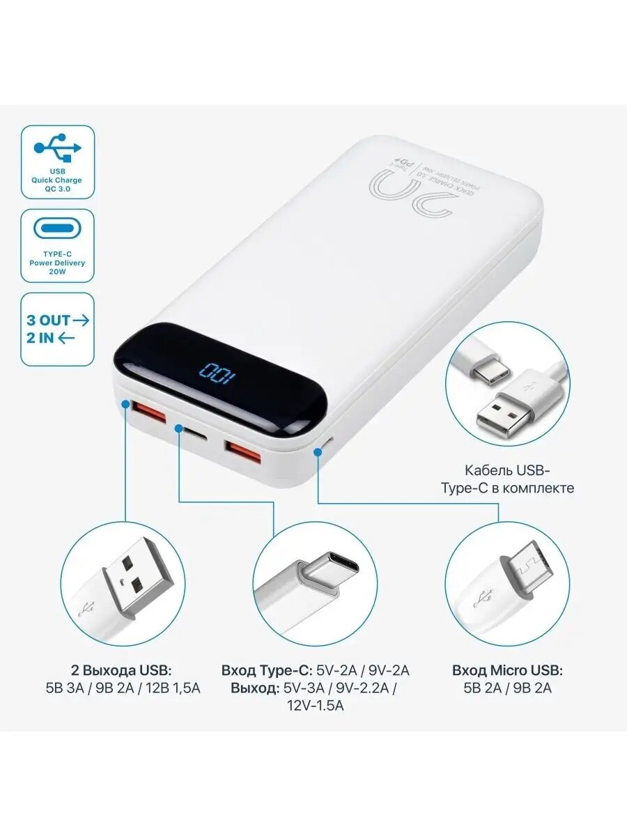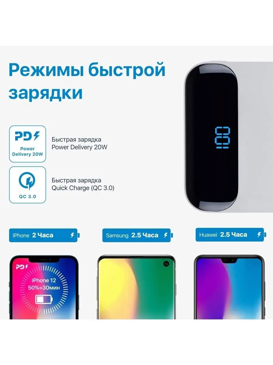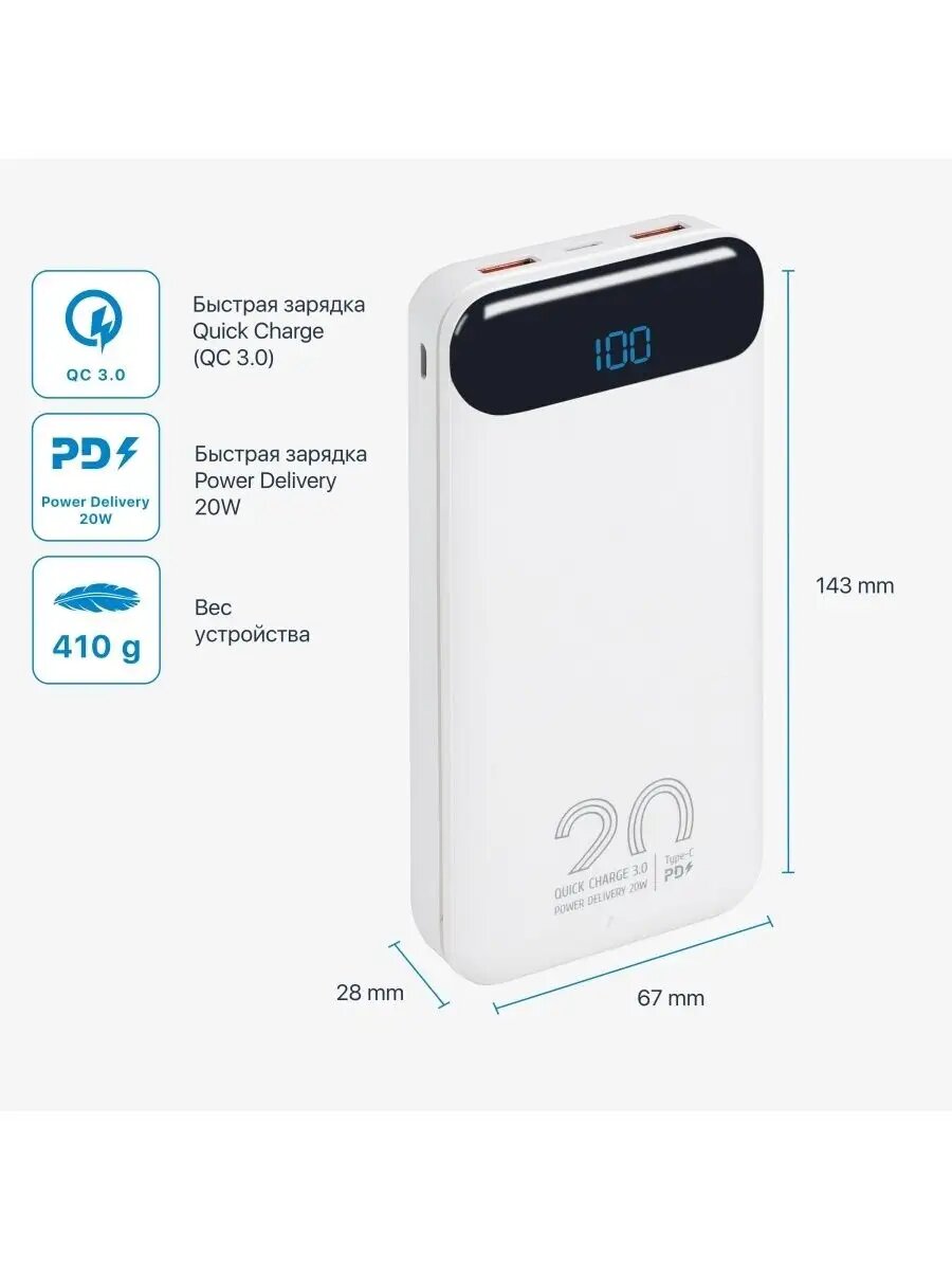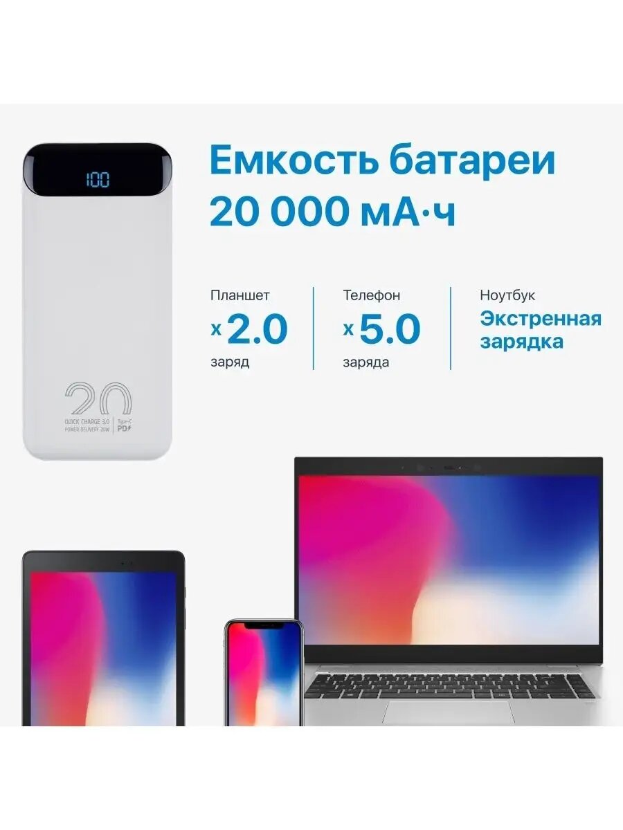 СохранитьВнешний аккумулятор RIVACASE VA2580 20 000 мАч, QC/PD 20W с дисплеем, белый интересное: