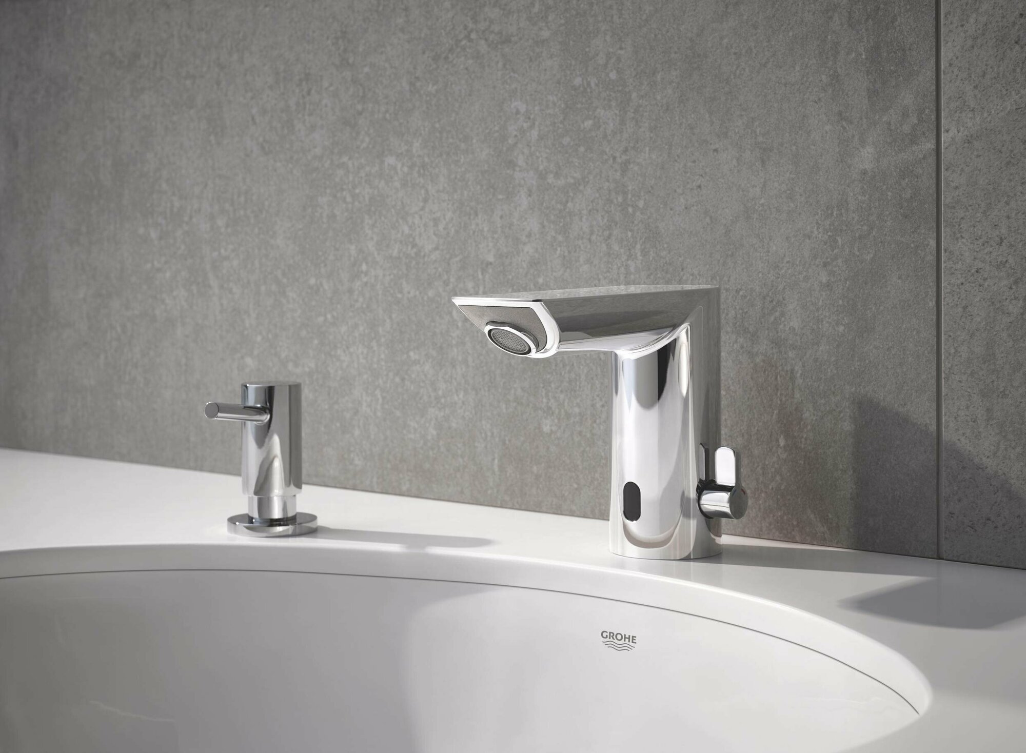 Инфракрасная электроника для раковины GROHE Bau Cosmopolitan E 36453000, со смешиванием и регулируемым ограничителем температуры, питание от сети
