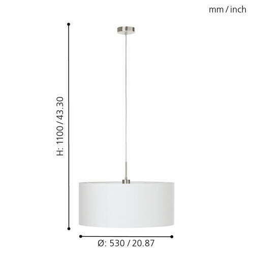 Eglo Подвес PASTERI, 1х60W (E27), Ø530, никель матовый/текстиль, белый 31575