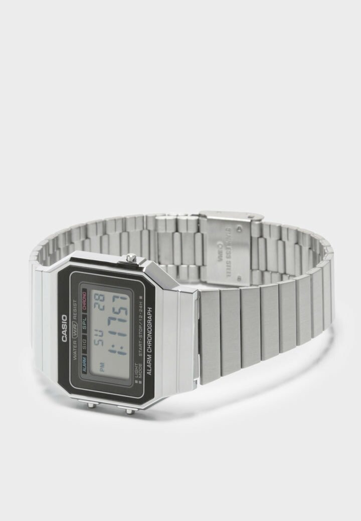 Наручные часы CASIO A700W-1A кварцевые, будильник, секундомер, водонепроницаемые, подсветка дисплея, серебристый