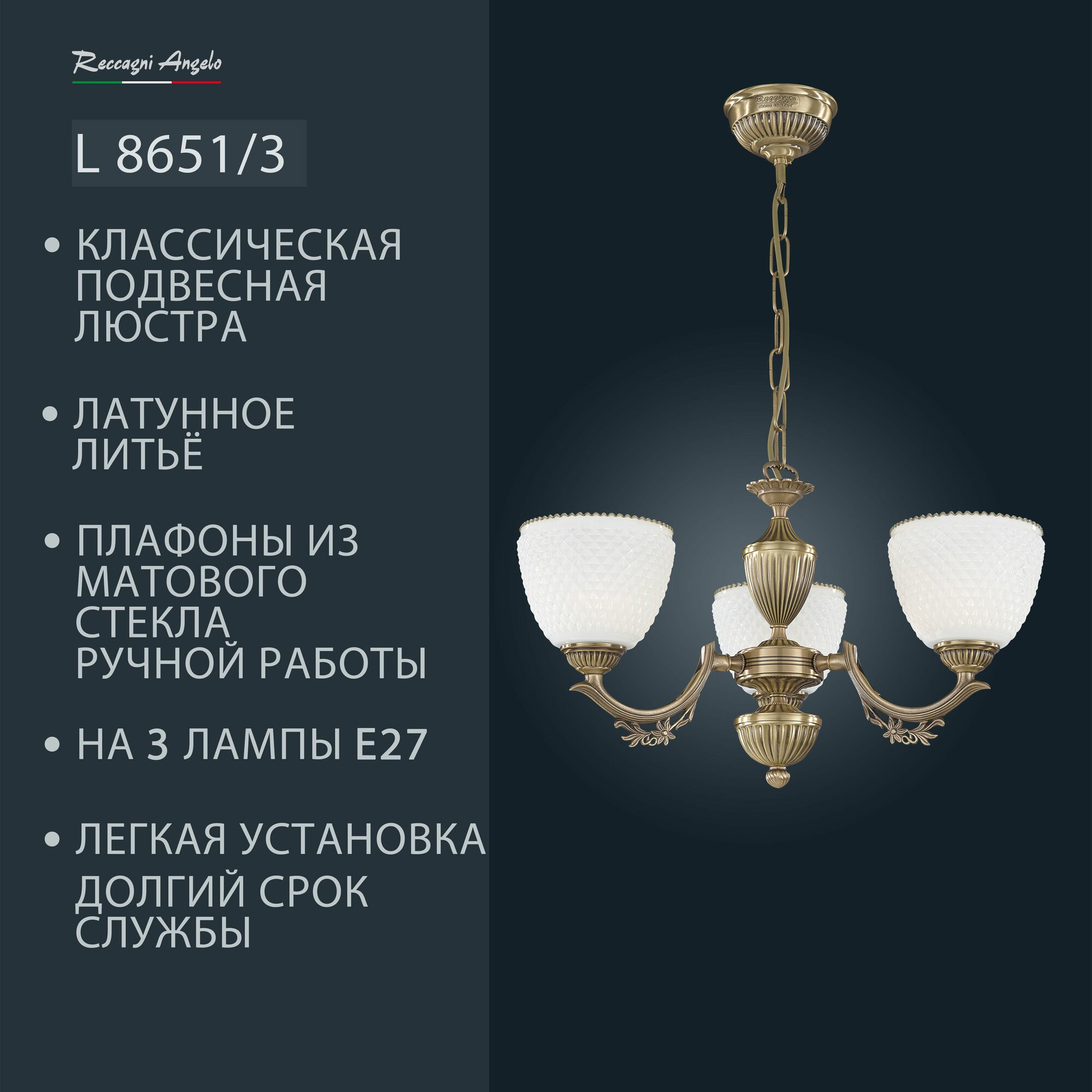 Люстра Reccagni Angelo L 8651, E14, 180 Вт, кол-во ламп: 3 шт., цвет: бронзовый