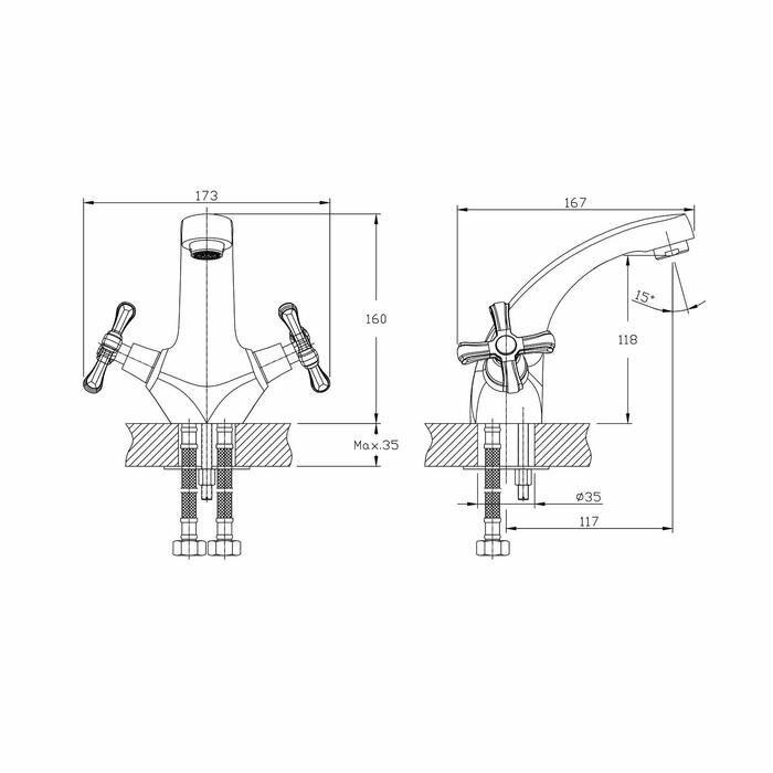 RUSH Bianki Смеситель двуручный для умывальника , хром BI7650-11