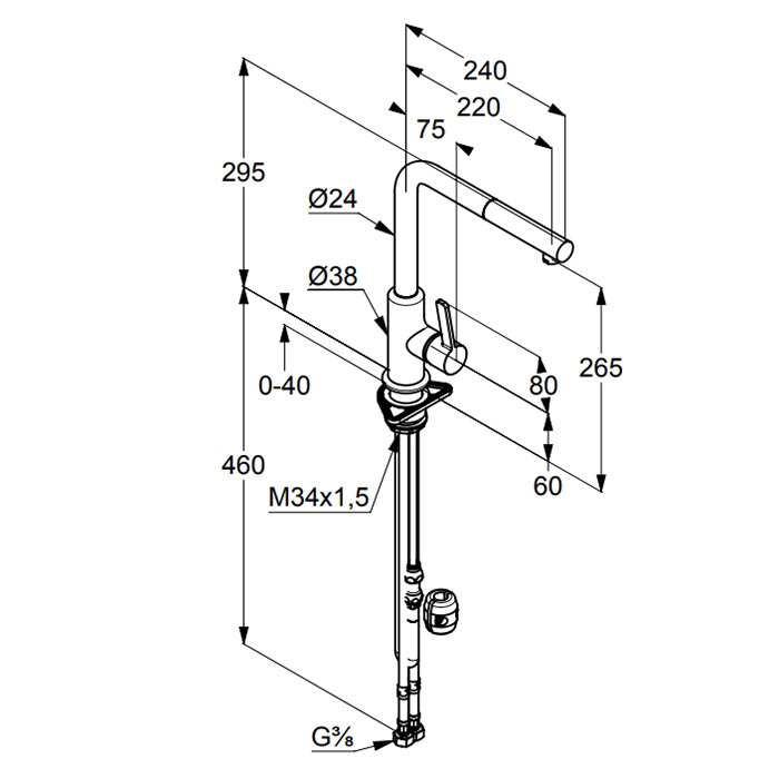 Смеситель для кухни KLUDI 408518775 L-INE S Смеситель для кухни DN 15, с выдвижным изливом, хром/черный матовый