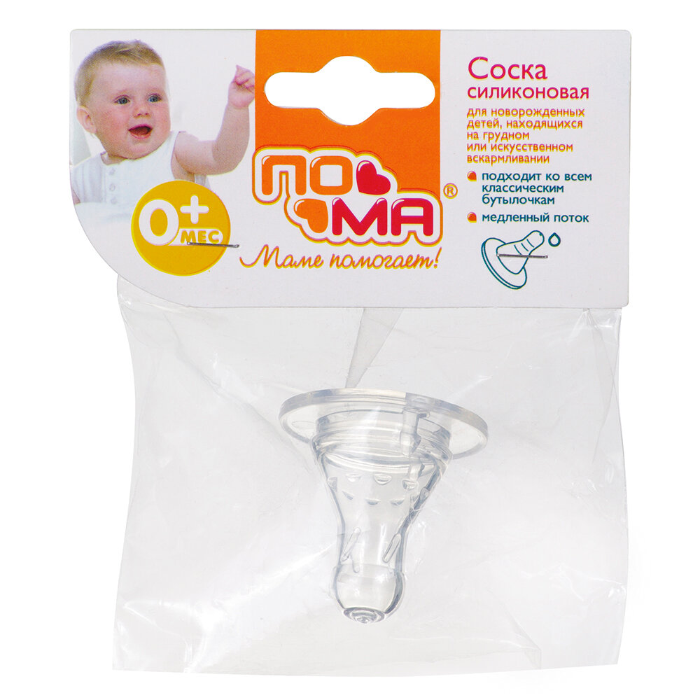 Купить Пома соска молочн силик медл поток 0+