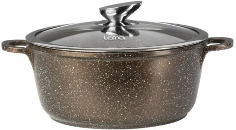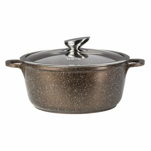 Кастрюля алюминиевая 6.1л LARA LR02-206 CHOCO мрамор, для всех видов плит, крышка