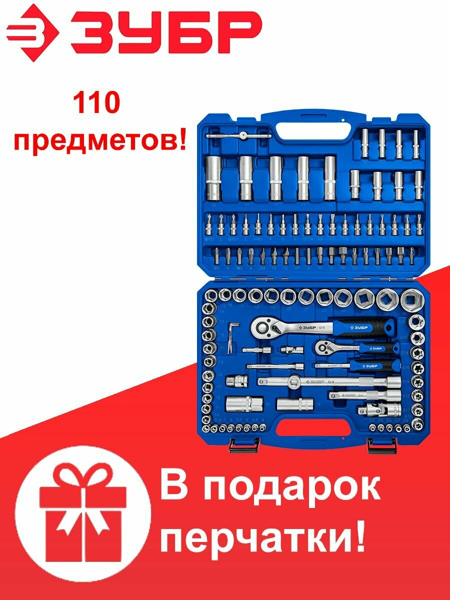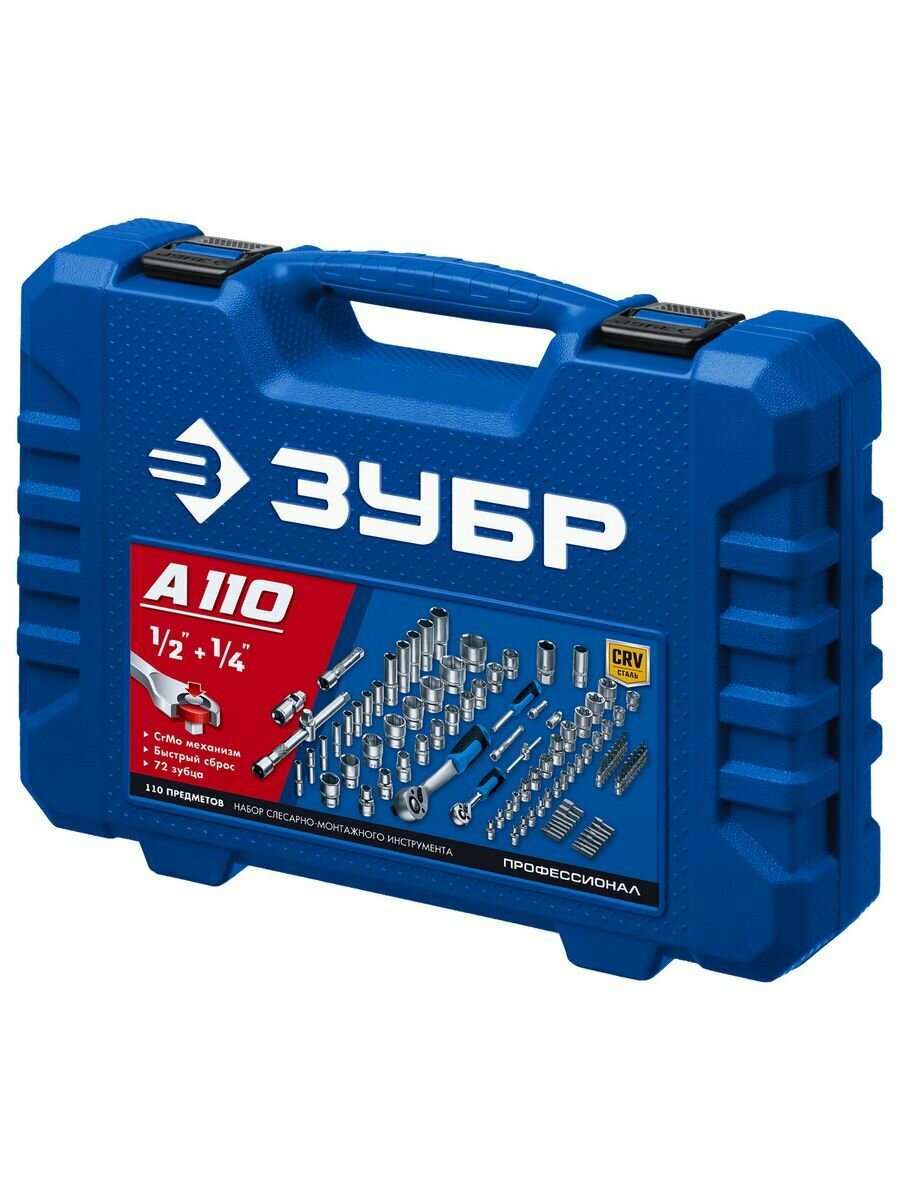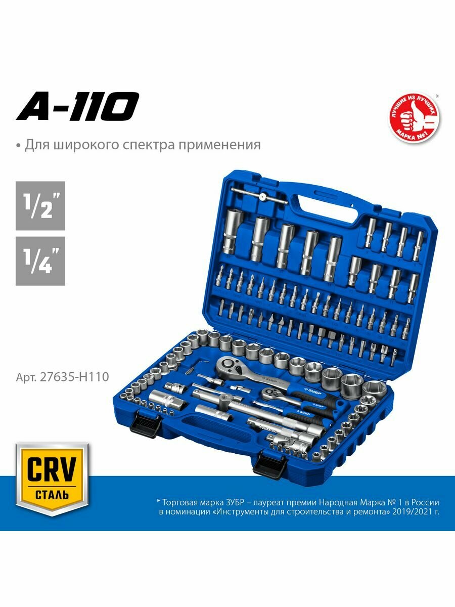 ЗУБР А-110, 110 предм, (1/2 + 1/4 ), универсальный набор инструмента, Профессионал (27635-H110)