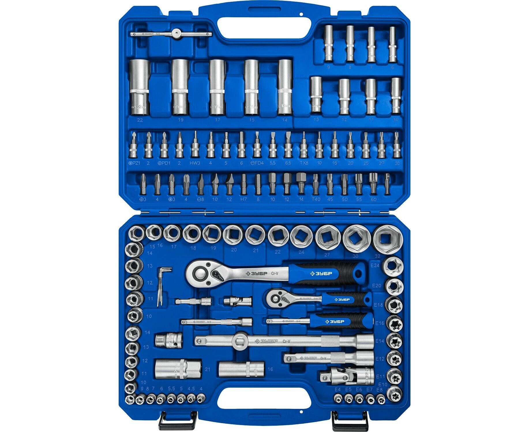 Набор слесарных инструментов Зубр, Мх-110, 1/2", 1/4", CrV сталь, кейс, 110 предметов