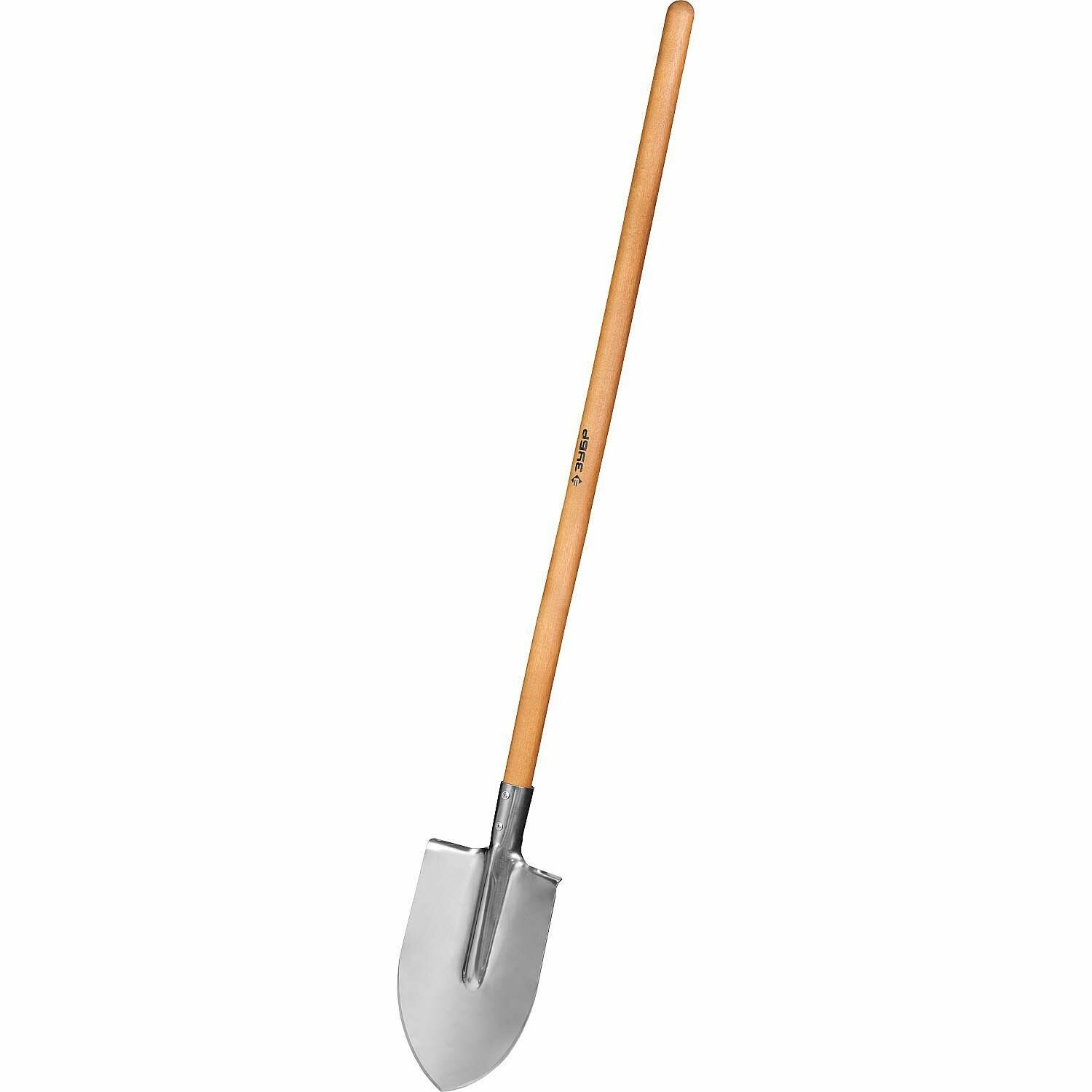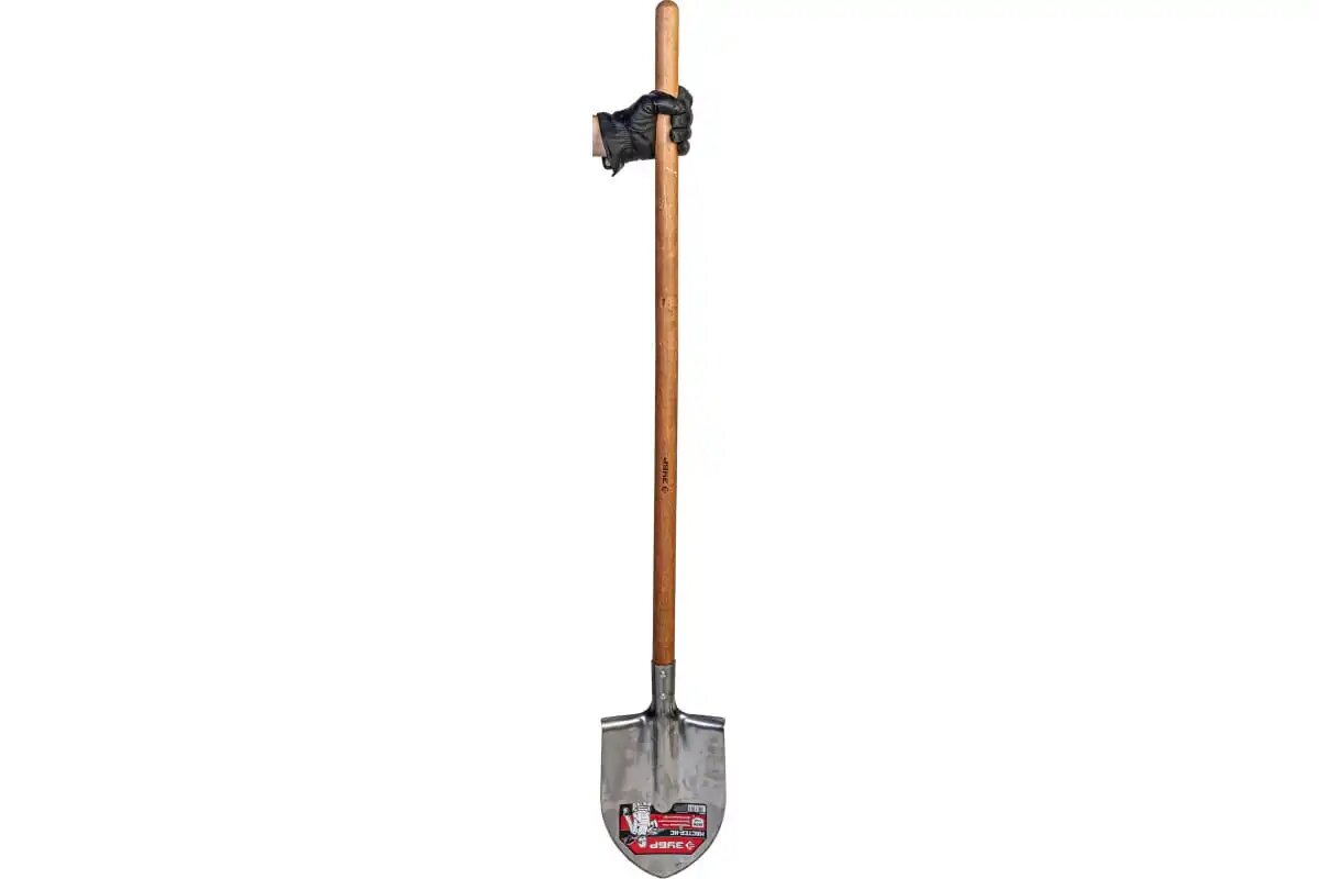 Лопата ЗУБР Мастер-НС, 380 х 208 х 1500 мм, полотно 2 мм, нержавеющая сталь, закалено, дерев. лакир. черенок высш. сорт, тип ЛКО, штыковая лопата (39443)