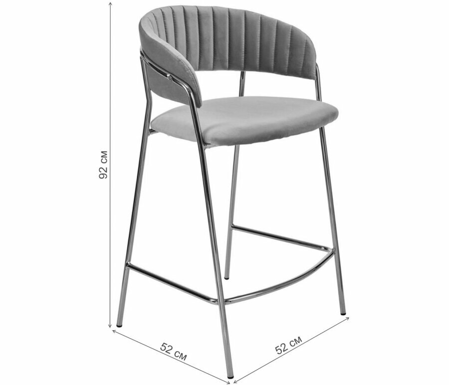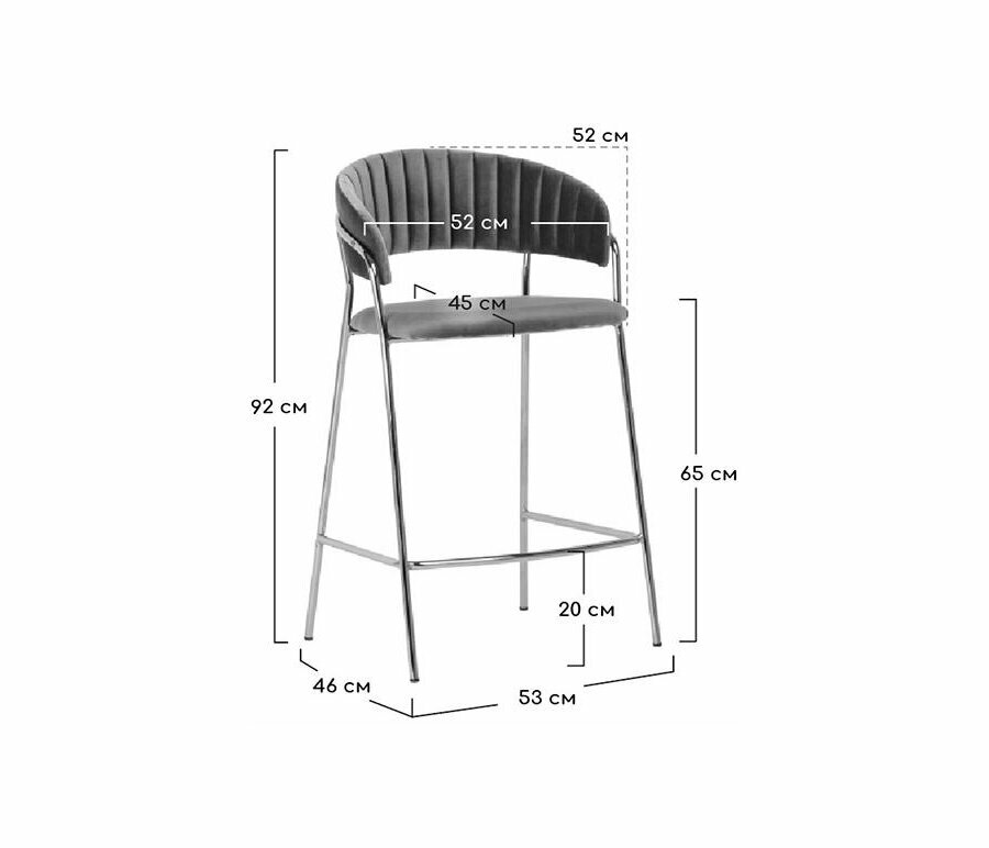Стул полубарный Turin серый с золотыми ножками / Барный стул для дома / Стул кухонный мягкий со спинкой / Стул велюр / Стулья барные для кухни мягкие