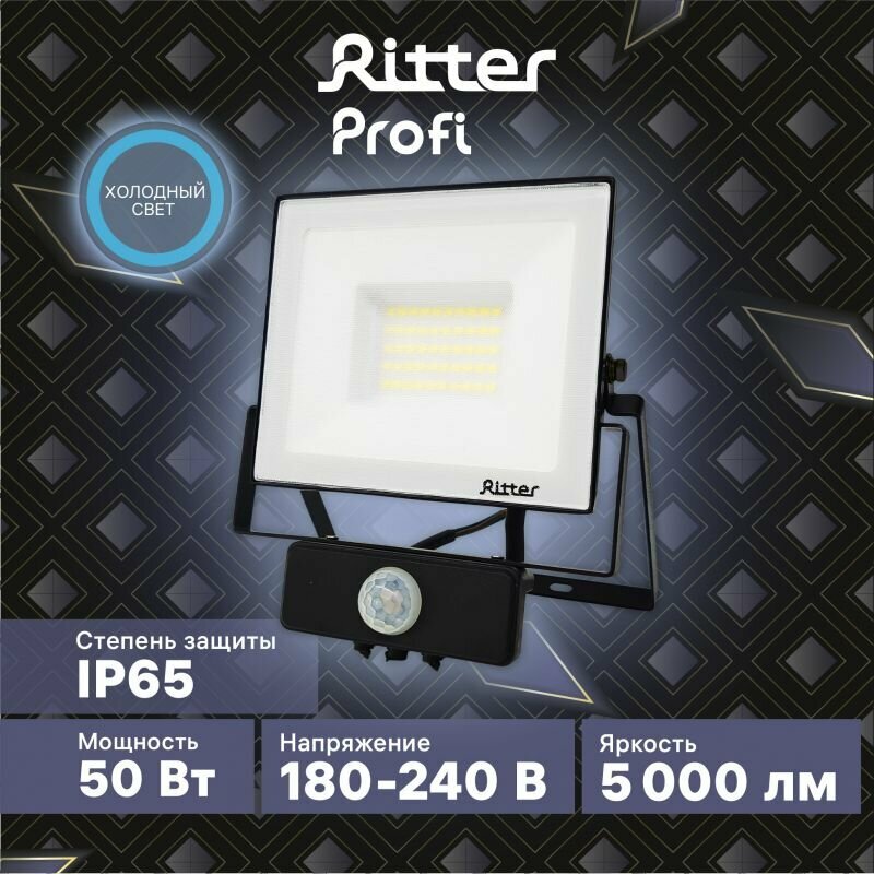 Прожектор Ritter светодиодн PROFI 230В 50 Вт 6500К 5000Лм IP65 с датчиком движения черный 53422 2