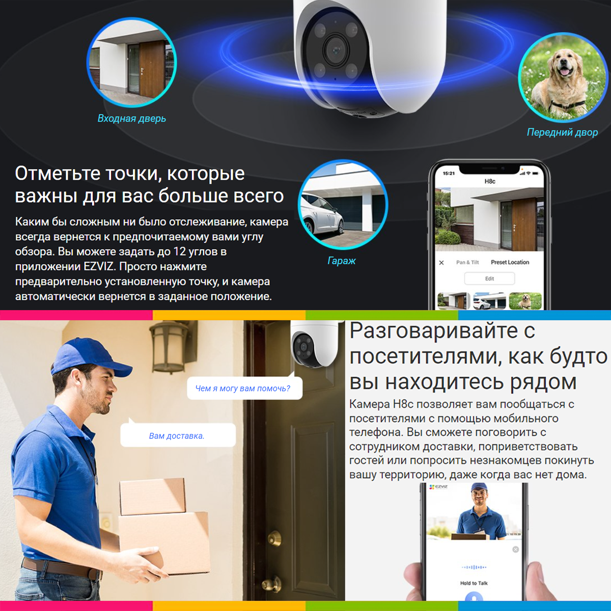 СохранитьУличная поворотная Wi-Fi камера с распознаванием человека и цветным ночным видением EZVIZ H8c (2MP) интересное: