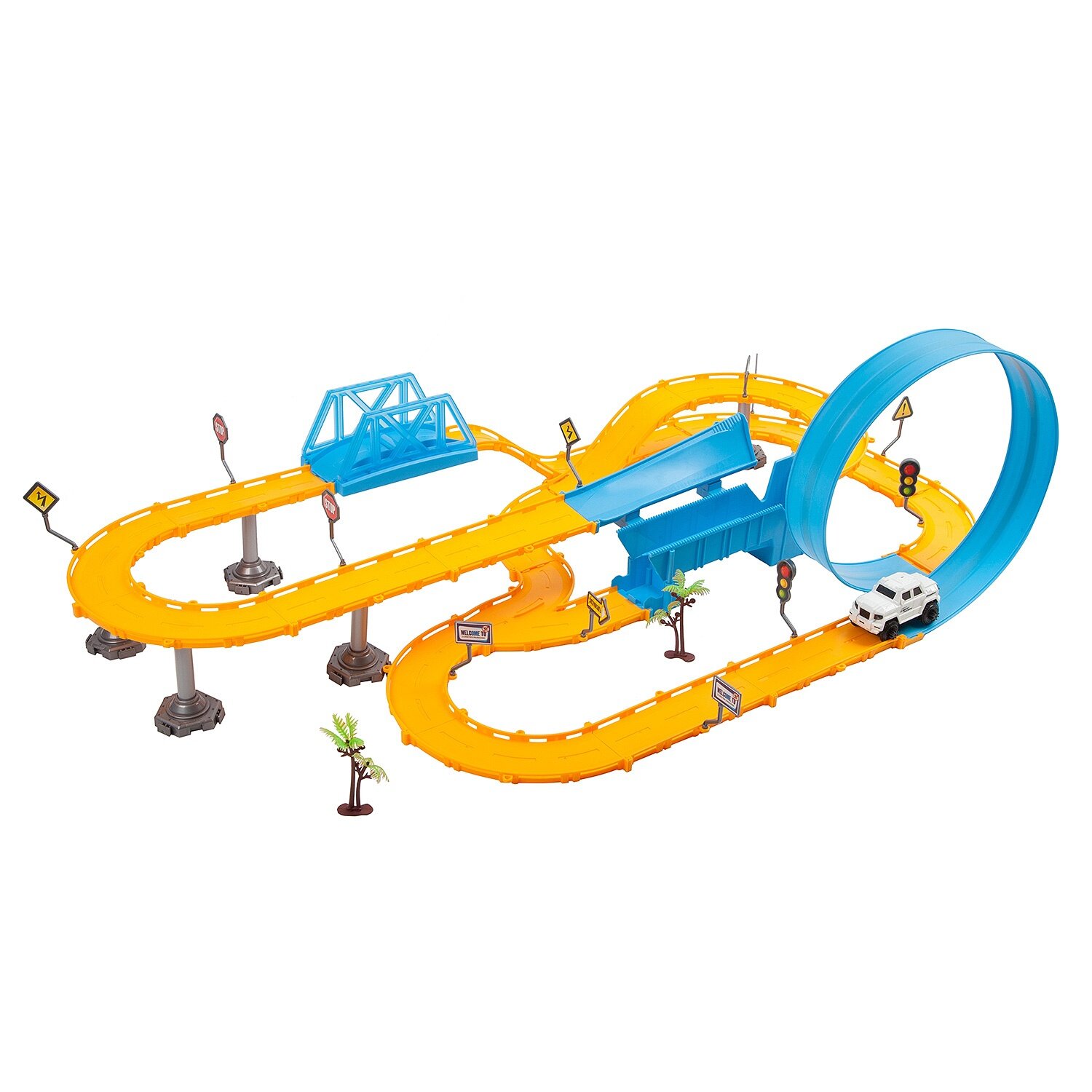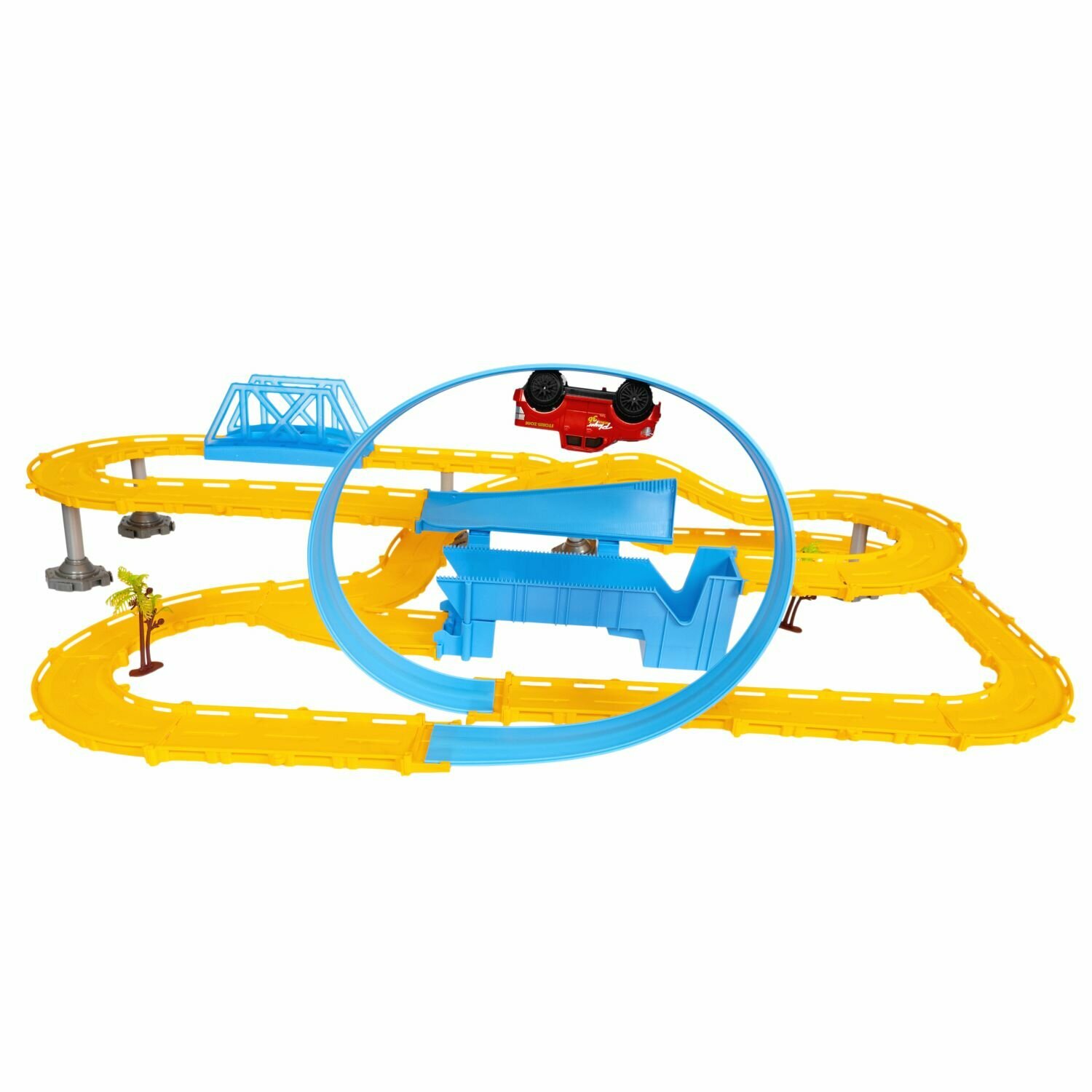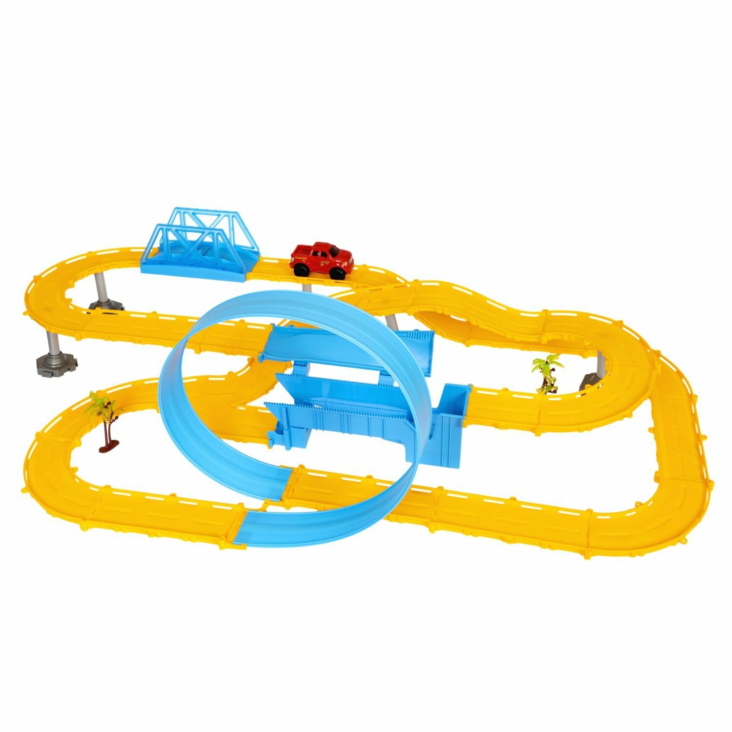 | Комплектация | - элементы трека; - дорожные знаки; - наклейки для дорожных знаков; - машинка; - пальма 2 шт.. |