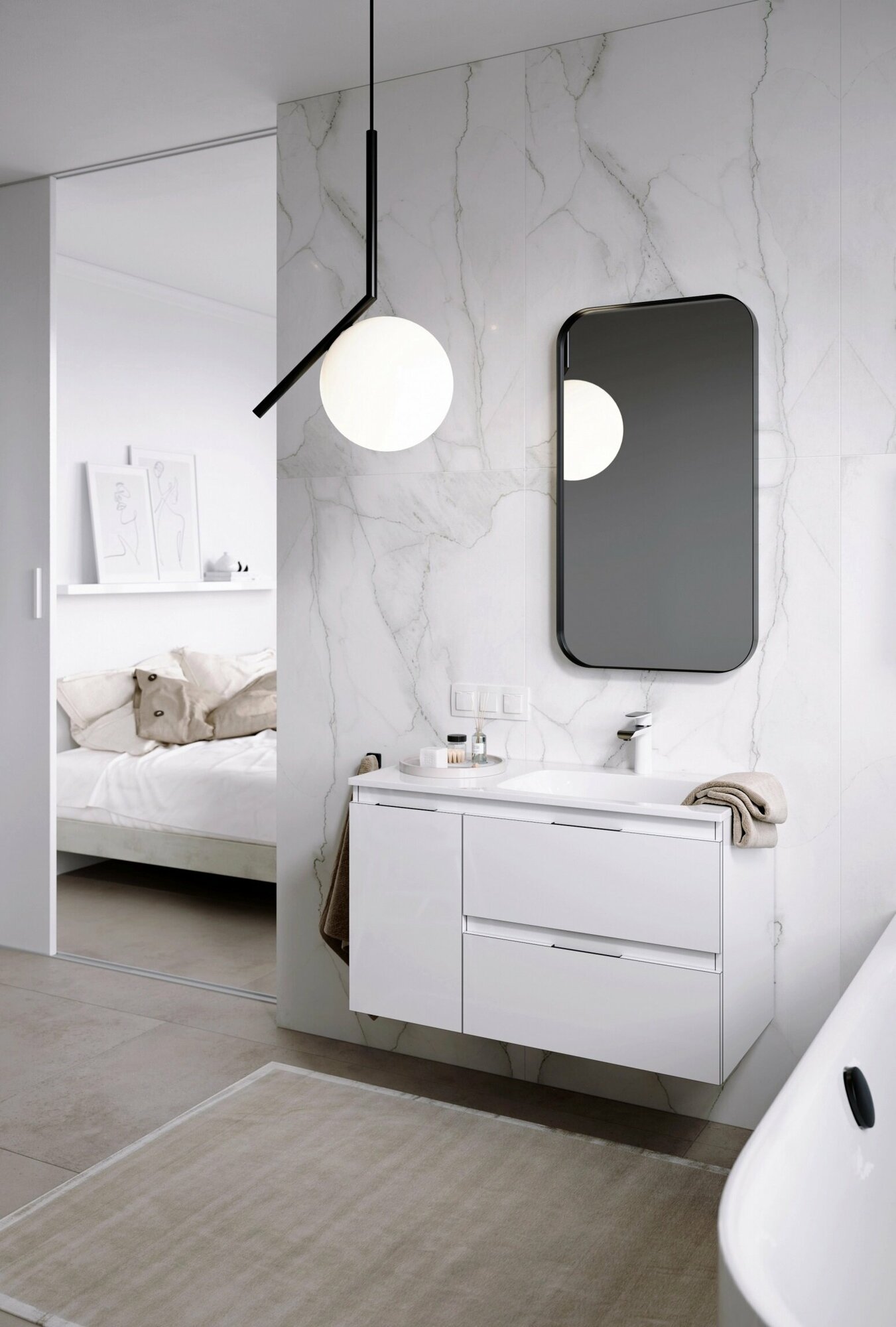 Тумба под раковину AQWELLA Accent 90 см ACC0109RW подвесная, правая белая