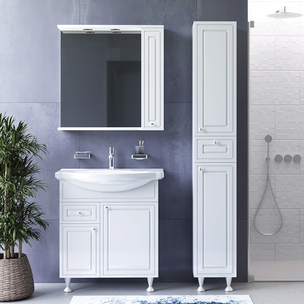 M41-FSX0753WG-WCC075 Palace One, база на ножках с раковиной, 75 см, ящ/дв, белый, глянец