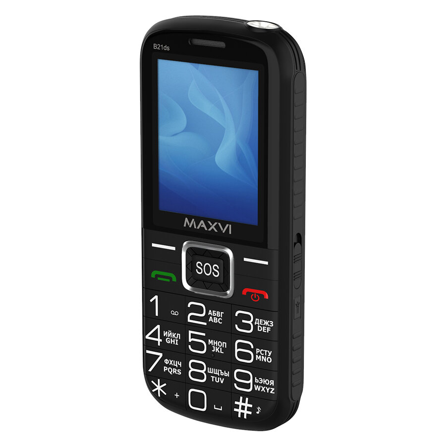 Мобильный телефон Maxvi B21ds / с большими кнопками / ДОК-станцией / функция SOS / яркий фонарик