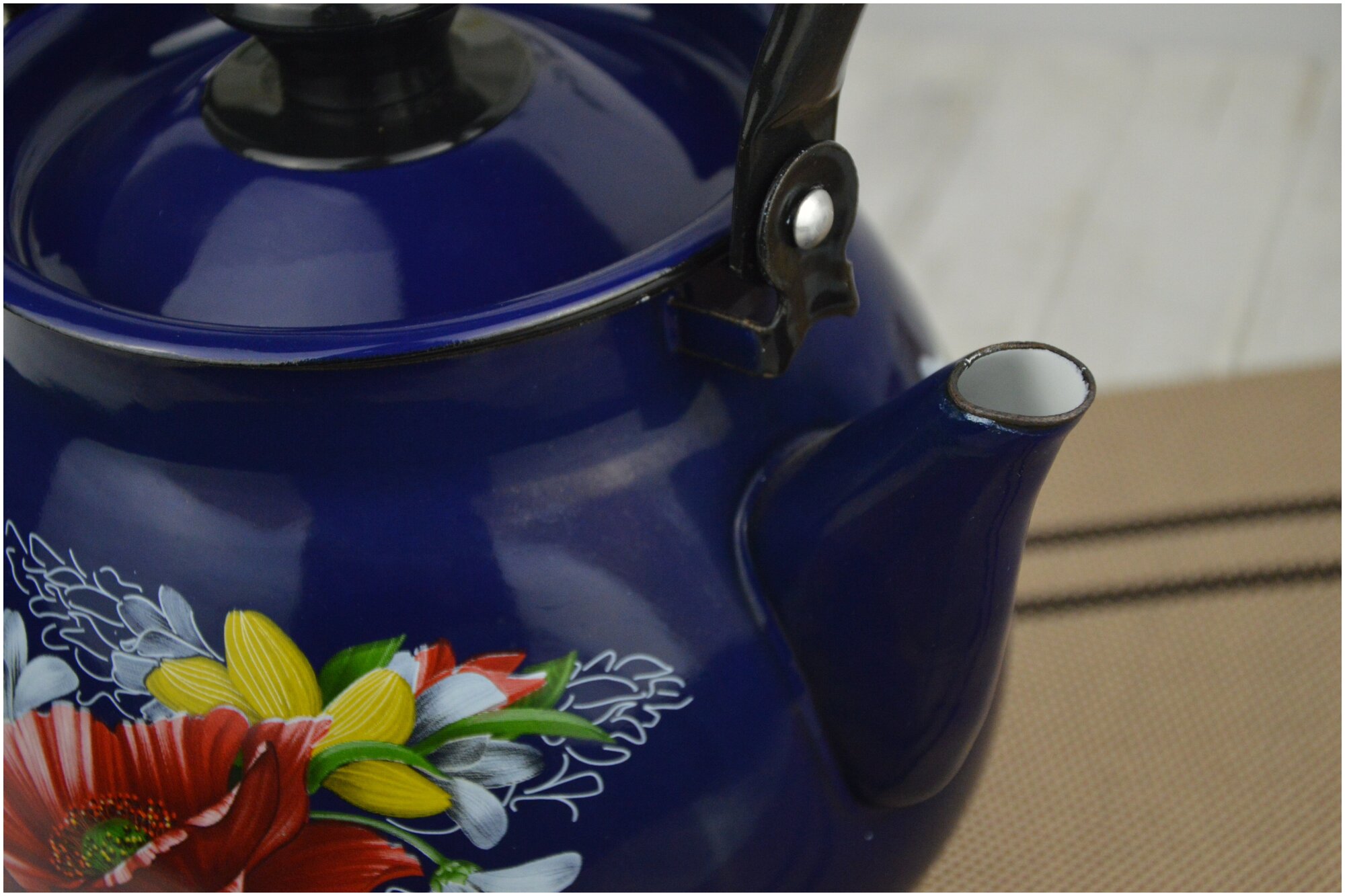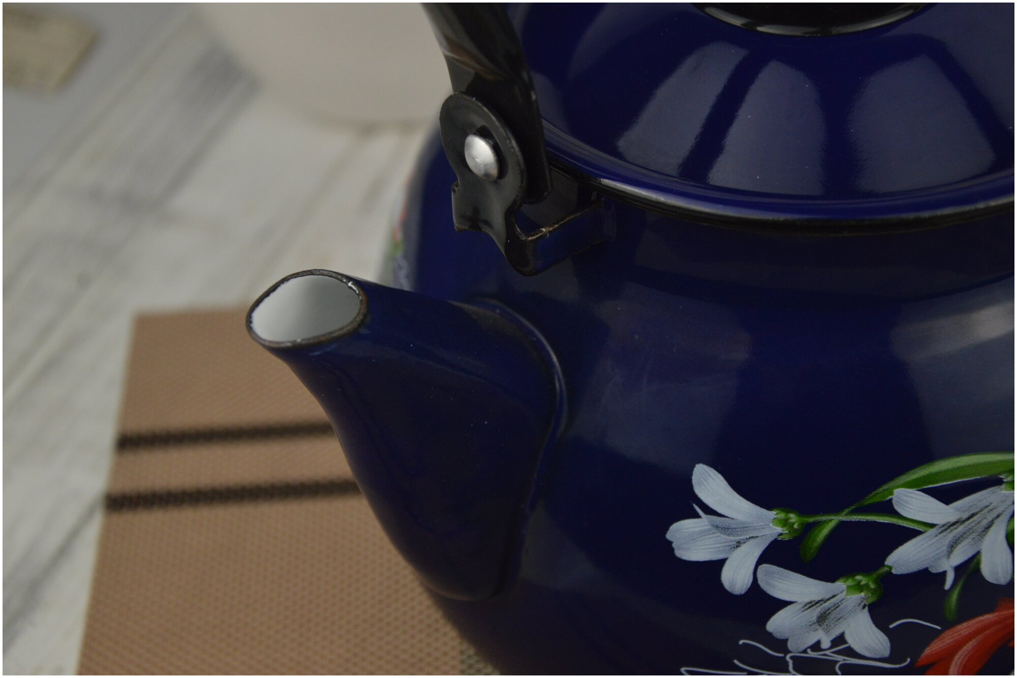 Чайник эмалированный, синий с декором, 3,5 л., в ассортименте интересное: