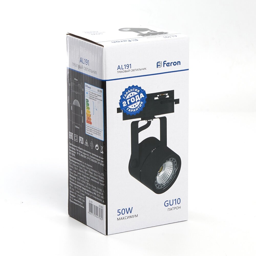 Трековый светильник Feron AL191 под лампу 50 Вт однофазный 3 м² цвет черный