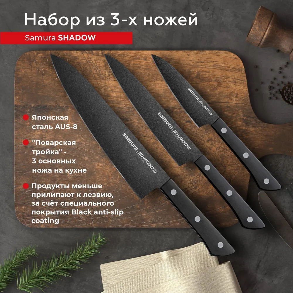 Набор из 3 ножей Samura SHADOW с покрытием Black-coating (11,23, 85), AUS-8