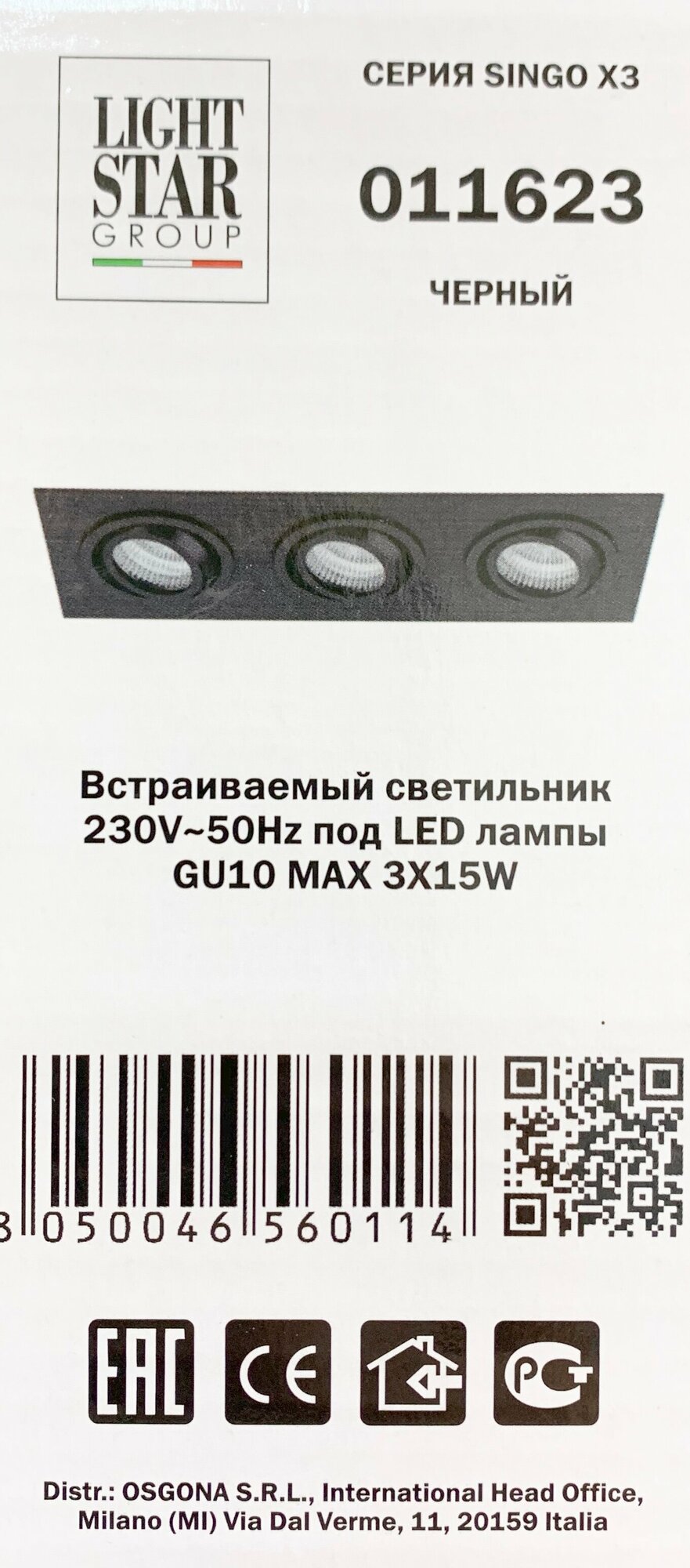 Спот Lightstar Singo 011623, GU5.3, 150 Вт, 3 лампы, 4000, нейтральный белый, цвет арматуры: черный, цвет плафона: черный