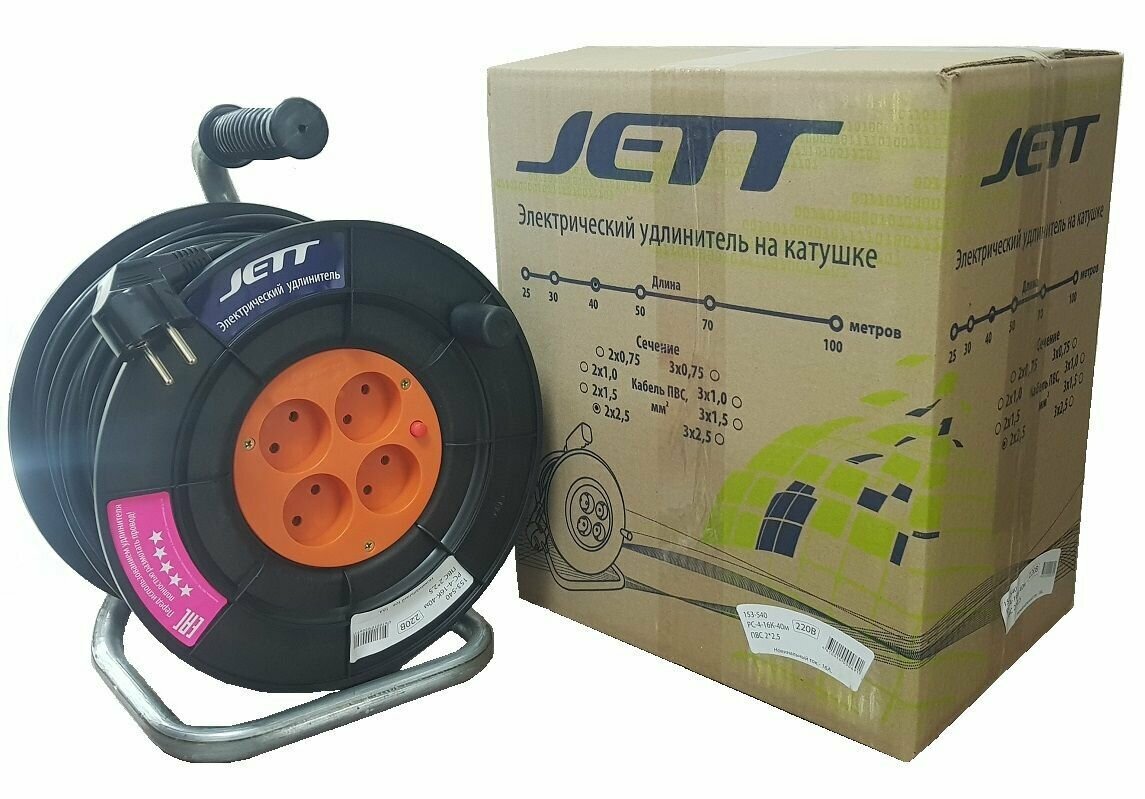 Купить Удлинитель на катушке JETT ( джетт) 4 гнезда 30 метров ( ПВС 2*2,5)