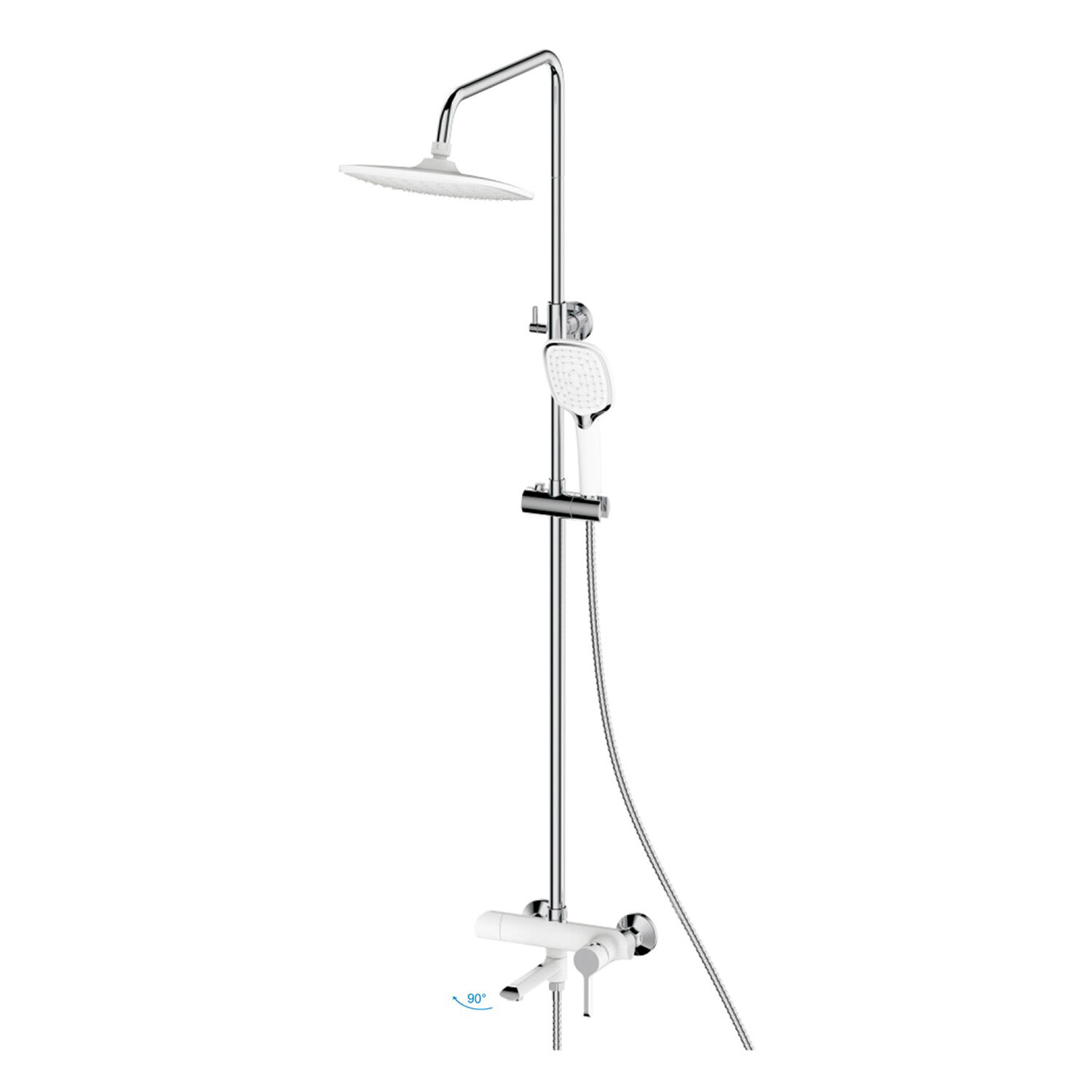 Душевая система Haiba HB24805-8 со смесителем, излив-переключатель на лейку,с верхним душем и ручной лейкой, белый/хром