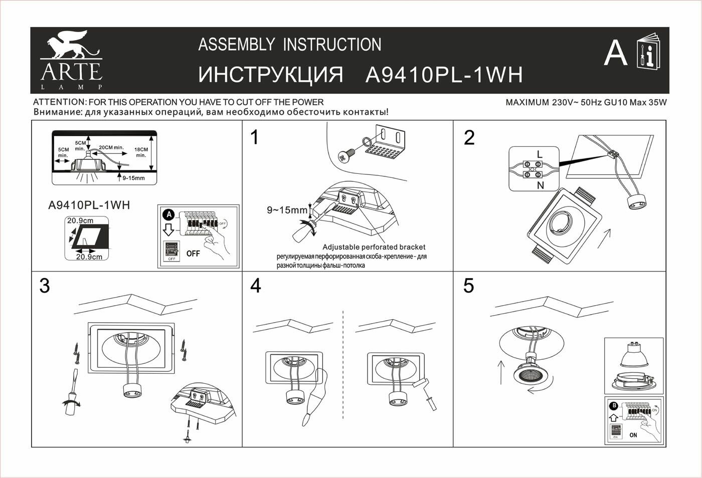 Встраиваемый светильник ARTE Lamp A9410PL-1WH