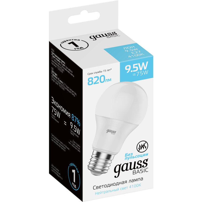 Ниже Вы можете прочитать отзывы на Светодиодная лампа Gauss Basic A60 9,5W 3000/4000/6500K 820Лм E27 диммируемая груша, ознакомится с подробными характеристиками, посмотреть интересные обзоры и фотографии на Светодиодная лампа Gauss Basic A60 9,5W 3000/4000/6500K 820Лм E27 диммируемая груша.
