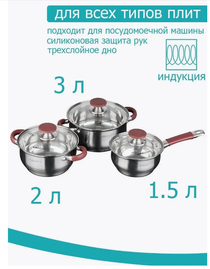 Набор кастрюль 6пр берта ковш 1,5л + 2,0л + 3,0л КТ15-В интересное: