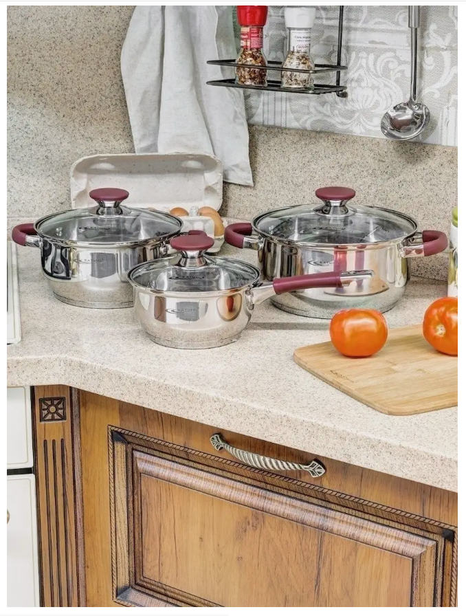 Набор кастрюль 6 предметов из нержавеющей стали (1,5л+2л+3л) «Берта» Катунь