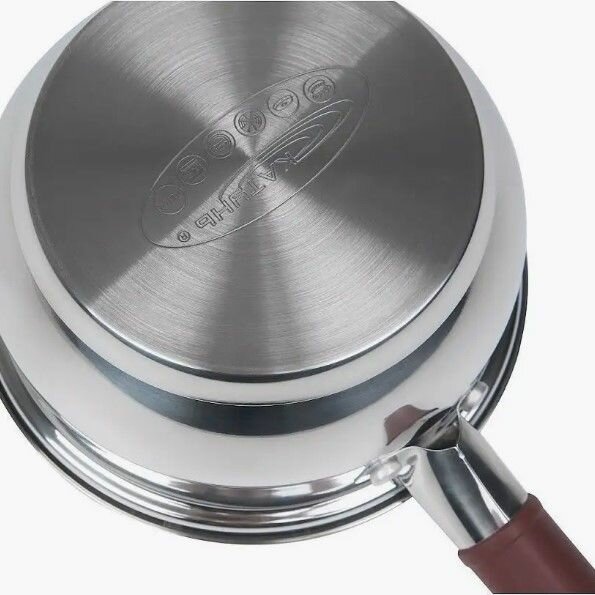 | Минусы: | Как и пишут в интернете: появляются различные следы (белые точки внутри) и разводы в металле (со внешней стороны нагрева на днище). Вероятно, какие-то реакции. Т.к. нетипового использования не было, вероятно, норма. |