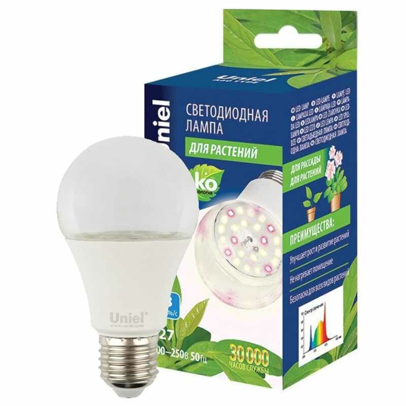 Лампа LED A60 10W E27 Для растений (фотосинтез) SPFR PLP01WH Uniel 90922
