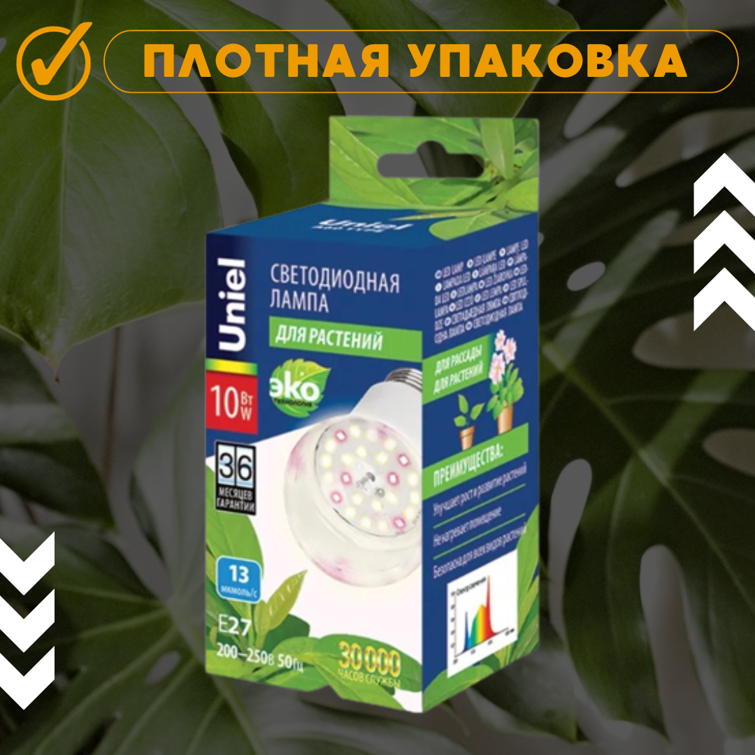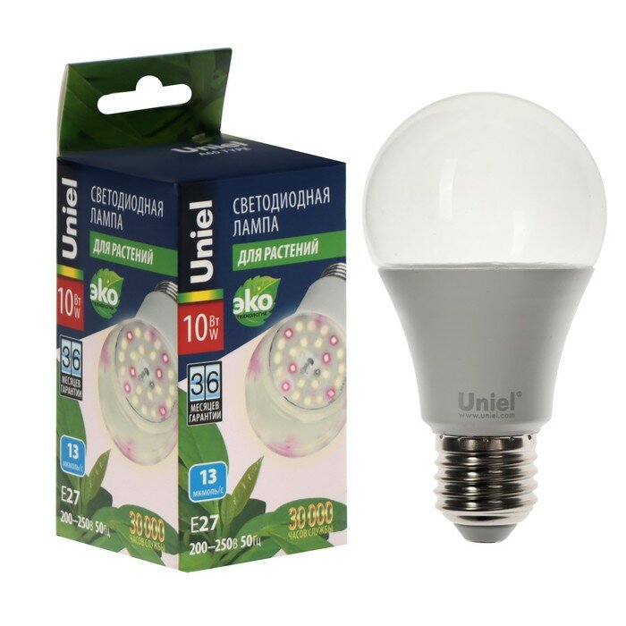 Лампа светодиодная для растений Uniel PLP01WH UL-00001820, E27, A60, 10 Вт