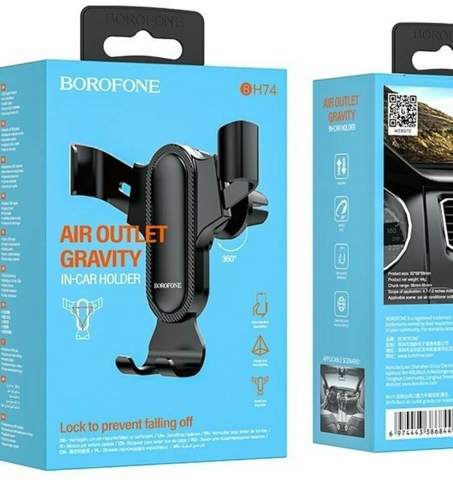 Автомобильный держатель - Borofone BH74, раздвижной, в дефлектор, гравитационный, черный, 1 шт