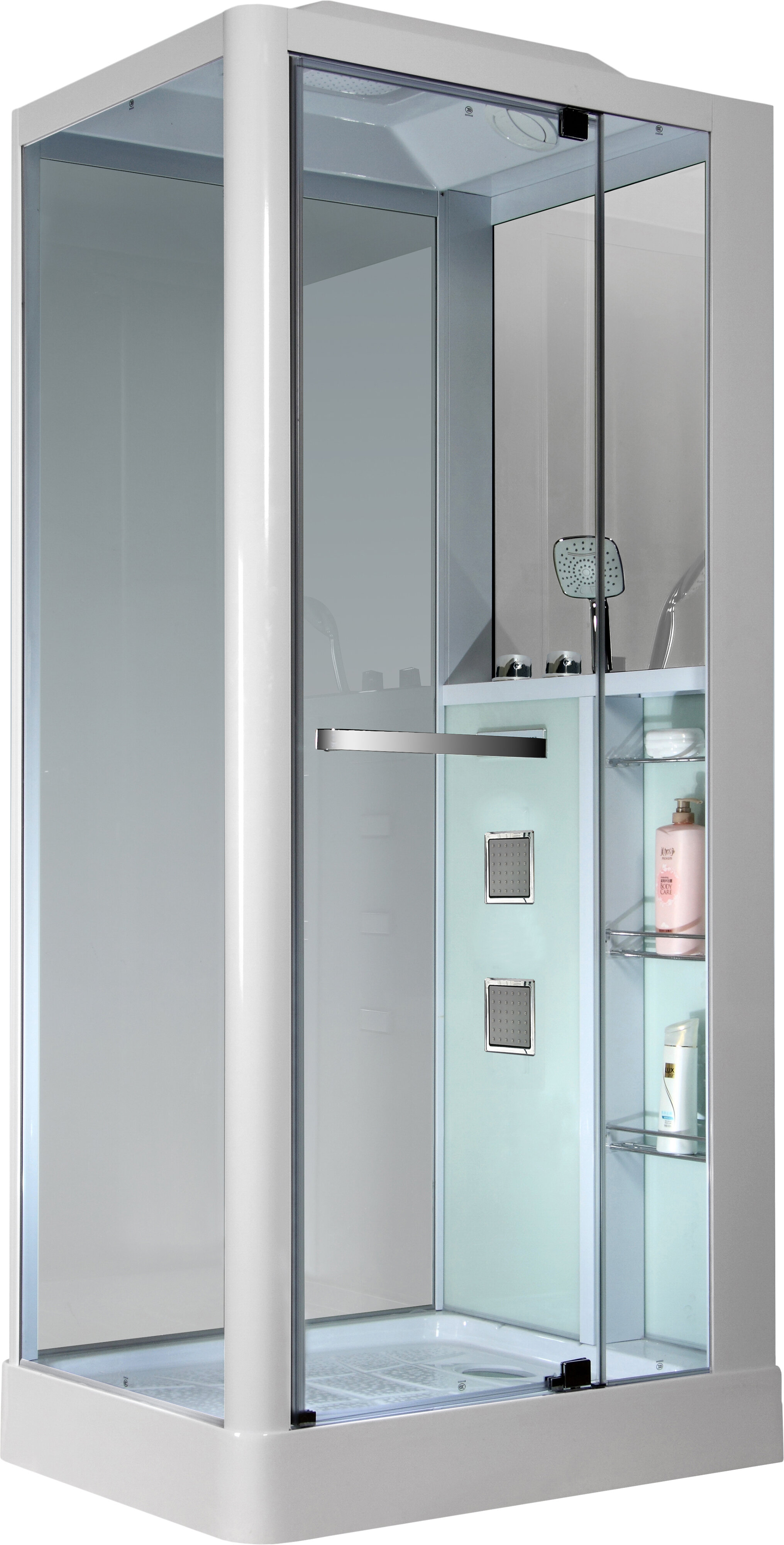 | Плюсы: | Квадратная форма имеет все преимущества, внутри просторно, конфигурация полок удобная, хорошая вентиляция, массажных форсунок только три, зато цена при наличии достаточного количества функций выгодно отличается от аналогов. |