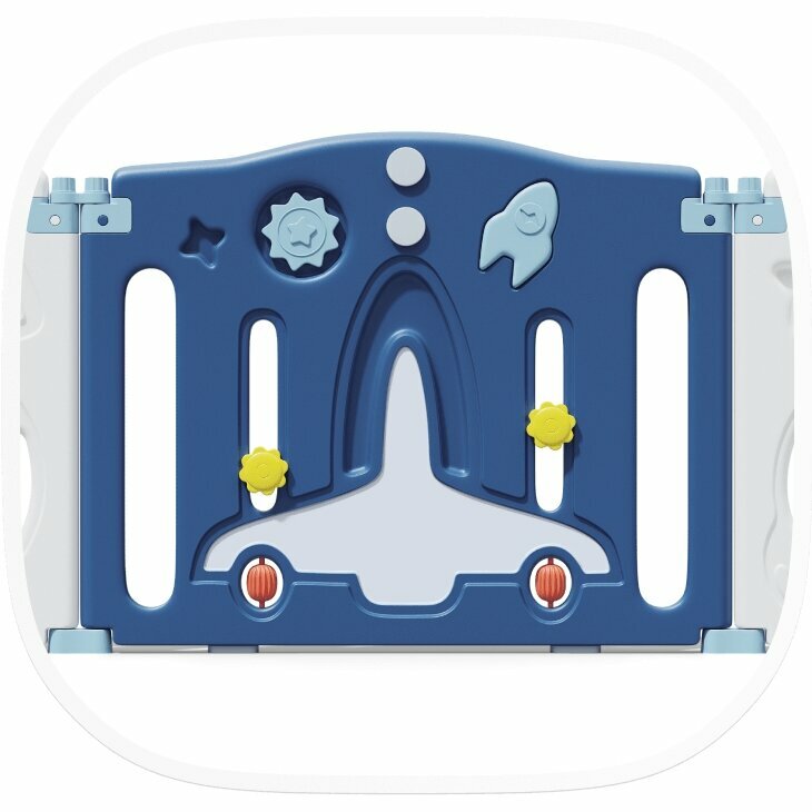 Манеж UNIX Kids "SUPREME Space" Blue, голубой/синий, 160x160 см, с ковриком, горкой и баскетбольным кольцом для дома и улицы