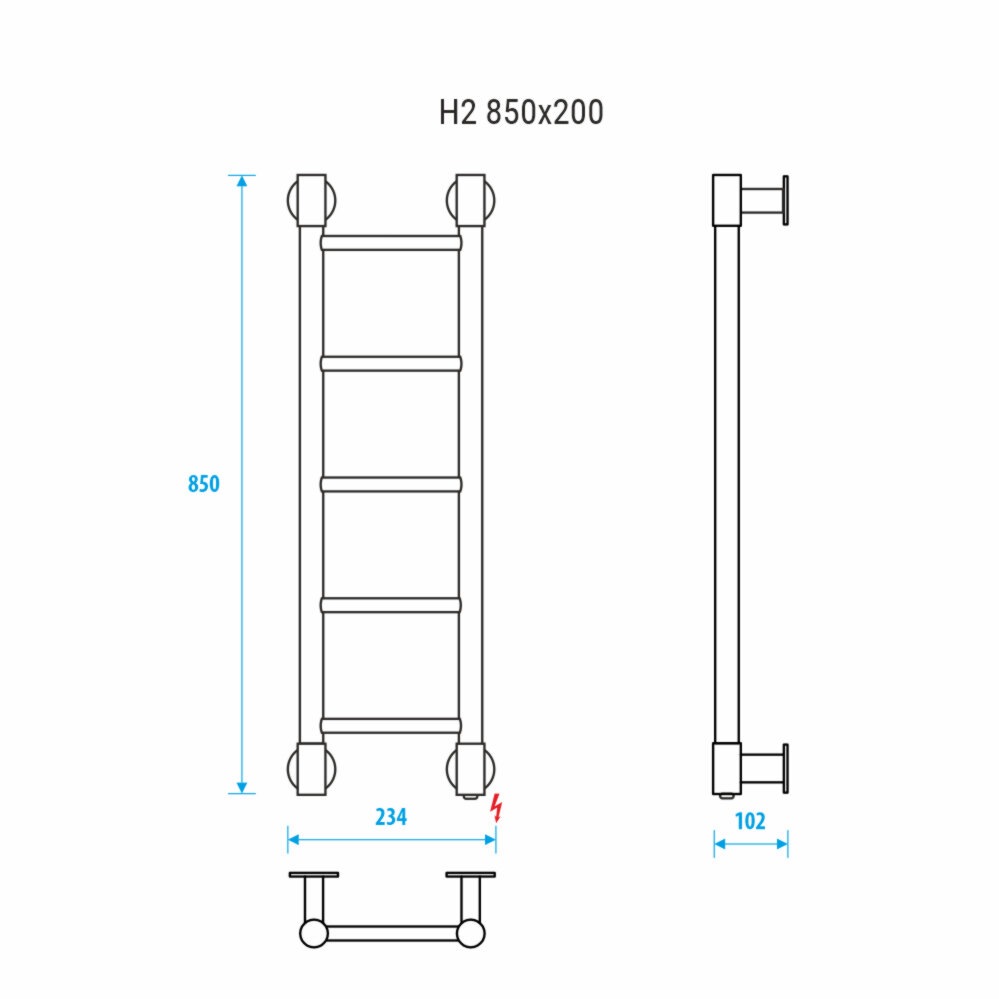 Полотенцесушитель электрический узкий Energy H2 850x200, лесенка прямая, цвет хром, скрытое/наружное подключение