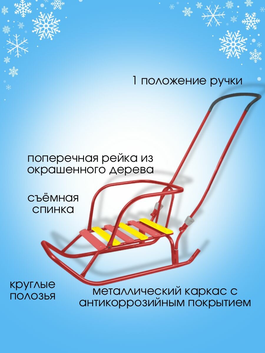 Игрушка. Санки детские НИКА Ветерок В6+/АЛ, алый, (ручка-простая, спинка-простая)