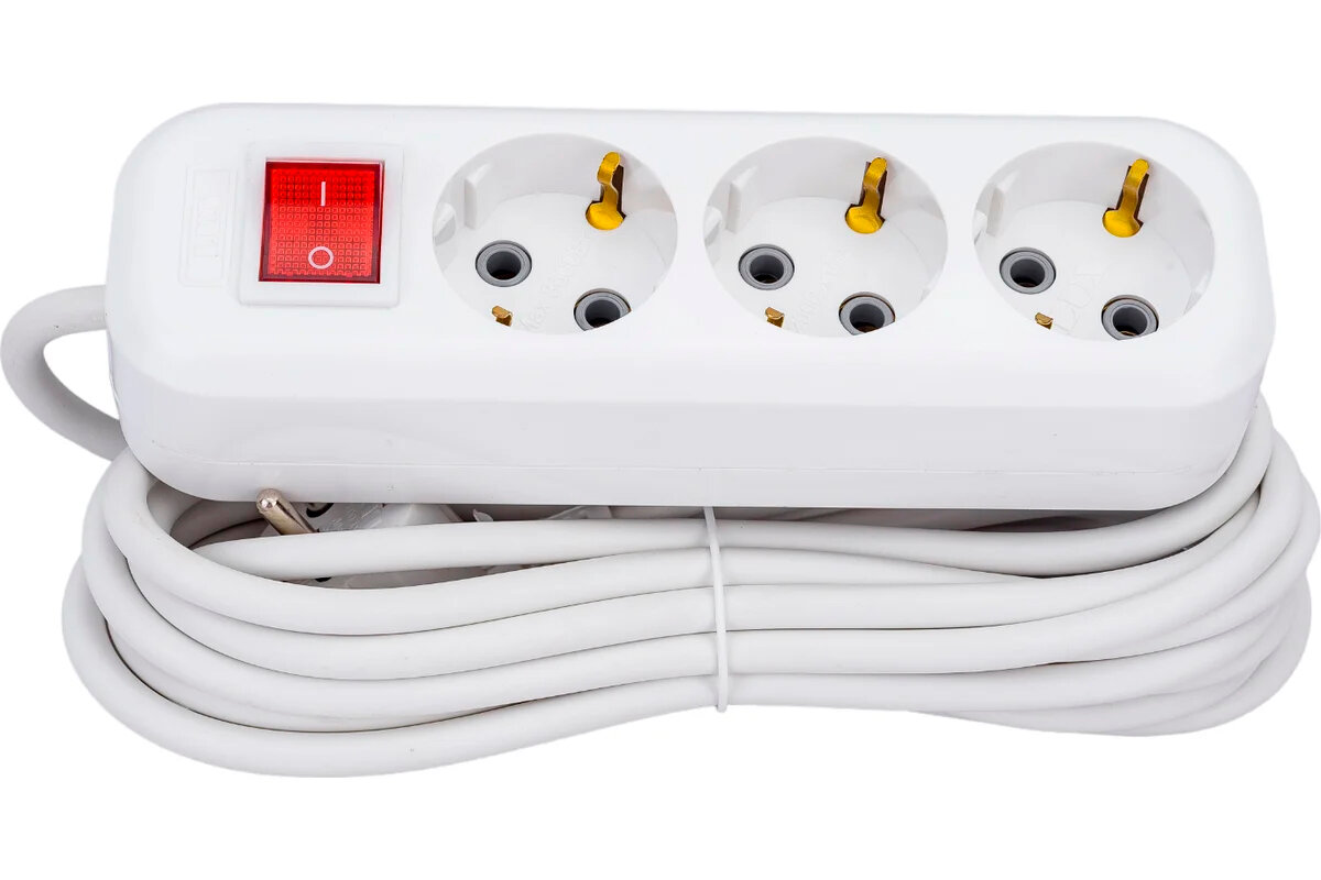 Удлинитель Lux У3-ЕВК-05 3 розетки 5 метров с заземлением и выключателем 4606400418221 718303