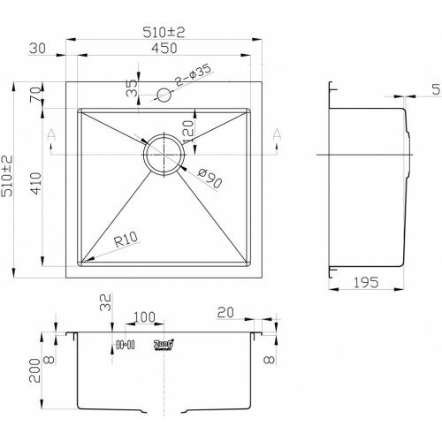 Мойка нержавеющая Zorg 510х510 мм SZR-51 BRONZE