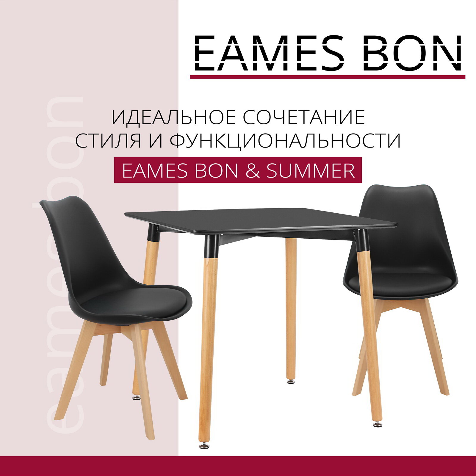 Стулья для кухни комплект 4 шт. Eames Bon, черный со спинкой / Стулья комплект / Стулья для дачи / Набор стульев / Стулья для гостиной / Мебель лофт