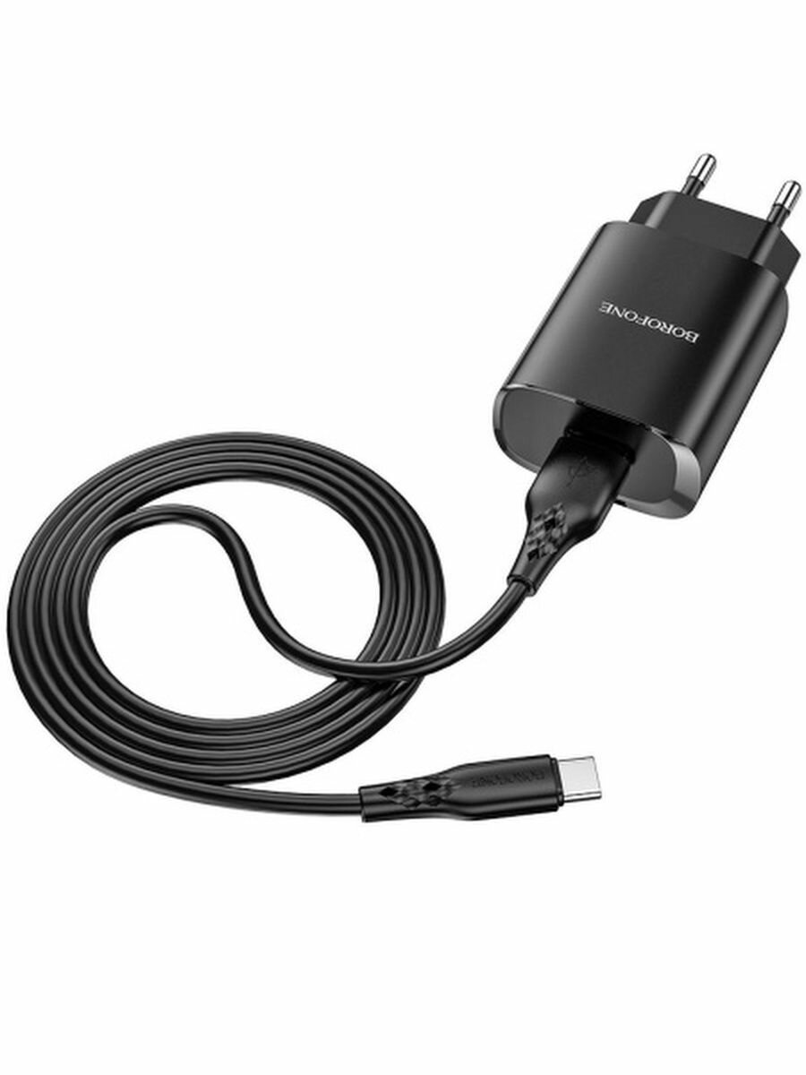 Блок питания сетевой 1 USB Borofone, BN1, 2100mA, пластик, кабель Type-C, цвет: чёрный