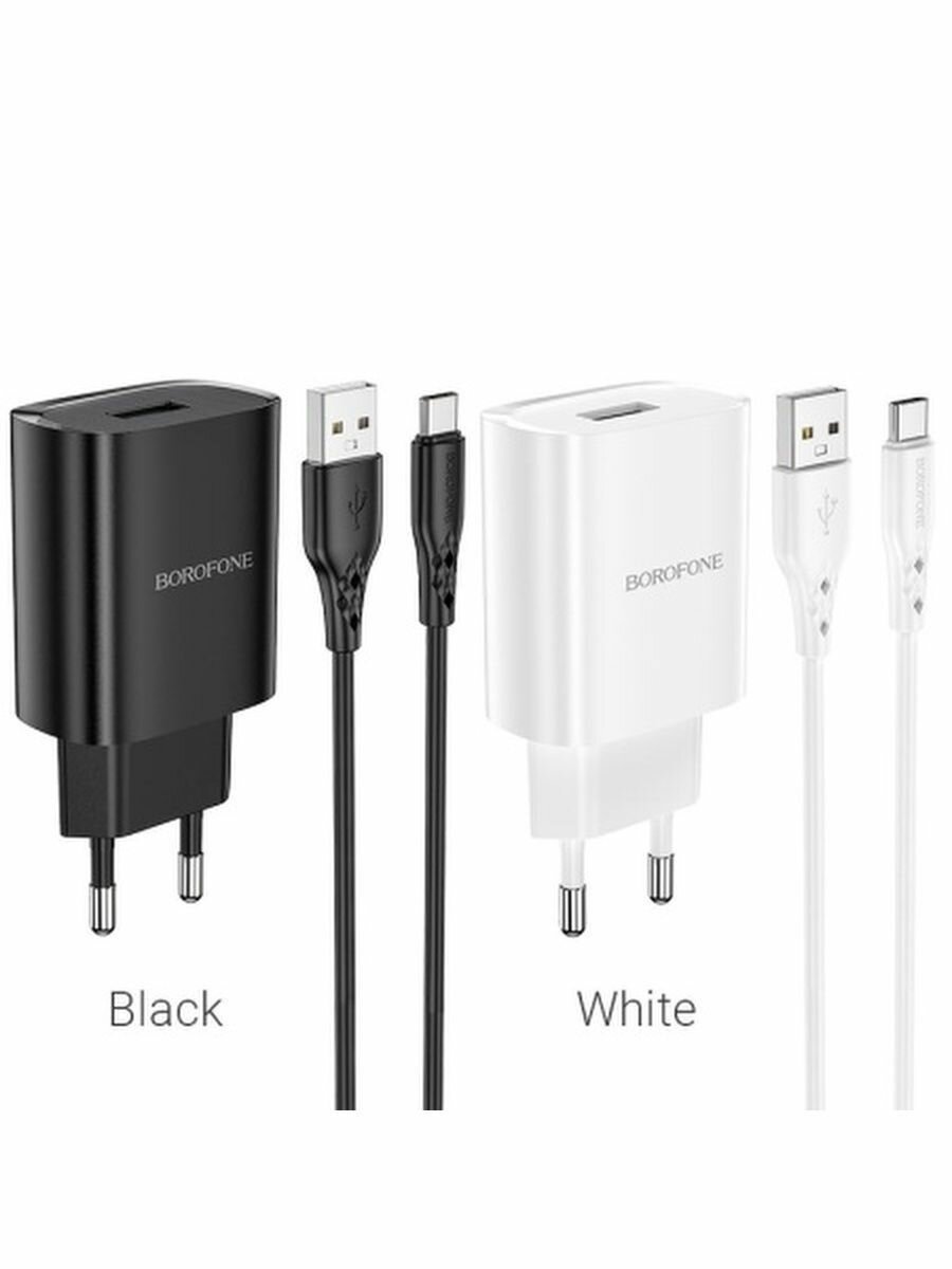 Сетевое зарядное устройство + кабель Type-C Зарядное устройство для телефона зарядка Android Borofone BN1 USB 2.1A 1м белый