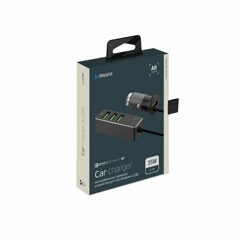 АЗУ 1 USB + 3 USB для пассажиров, QC 3.0, 7А, алюминий, графит, Deppa (11295)