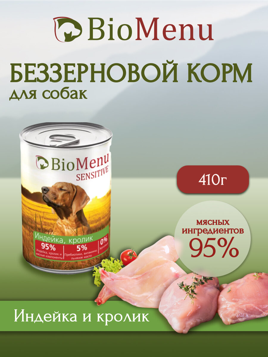 BioMenu SENSITIVE Консервы для собак Индейка/Кролик 95%-мясо 410г х 12 шт