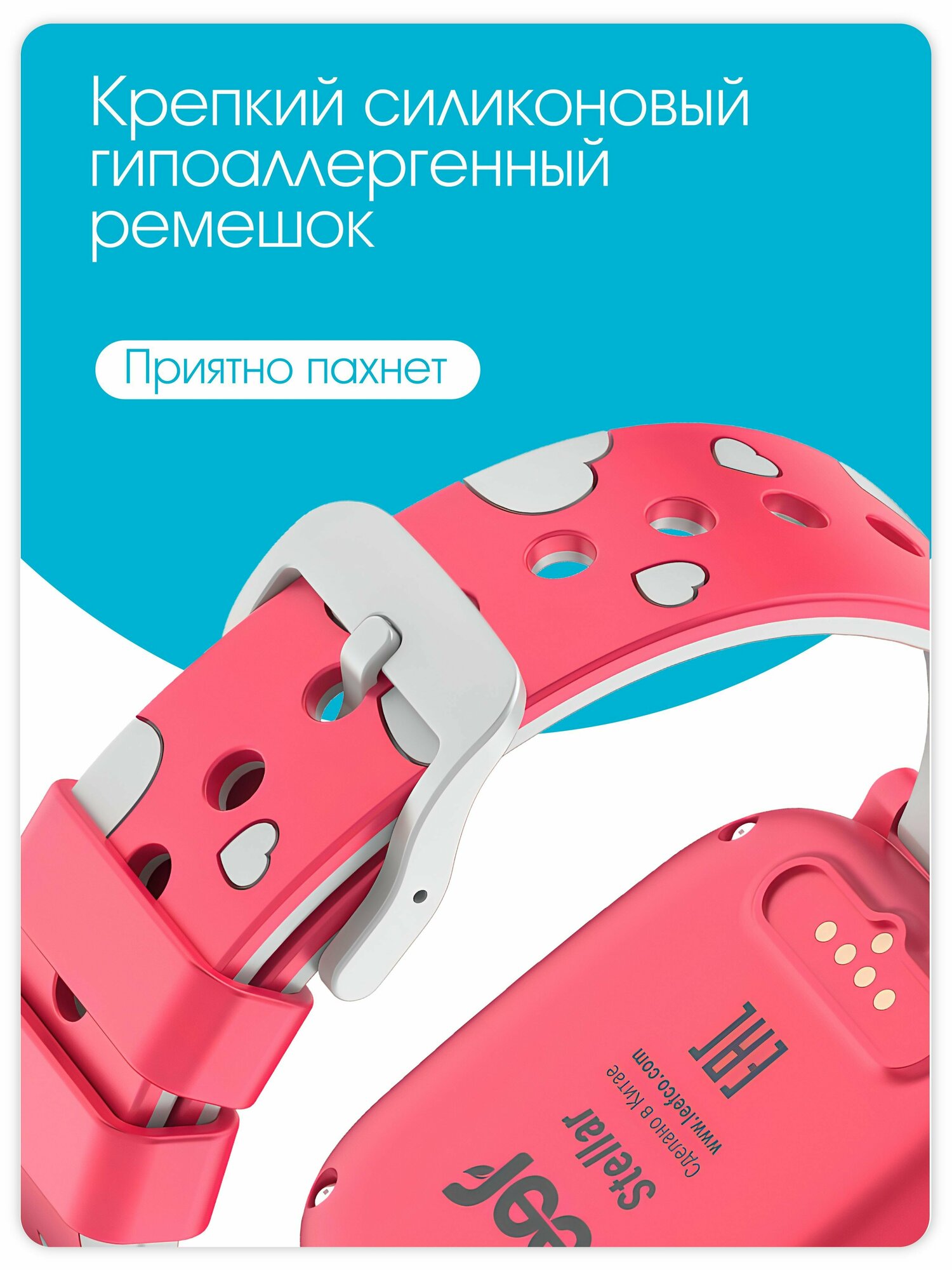 Leef Детские смарт-часы Leef Stellar, 4G, GPS, видеозвонок, геозоны, SOS, IP67, 750 мАч, роз/бел