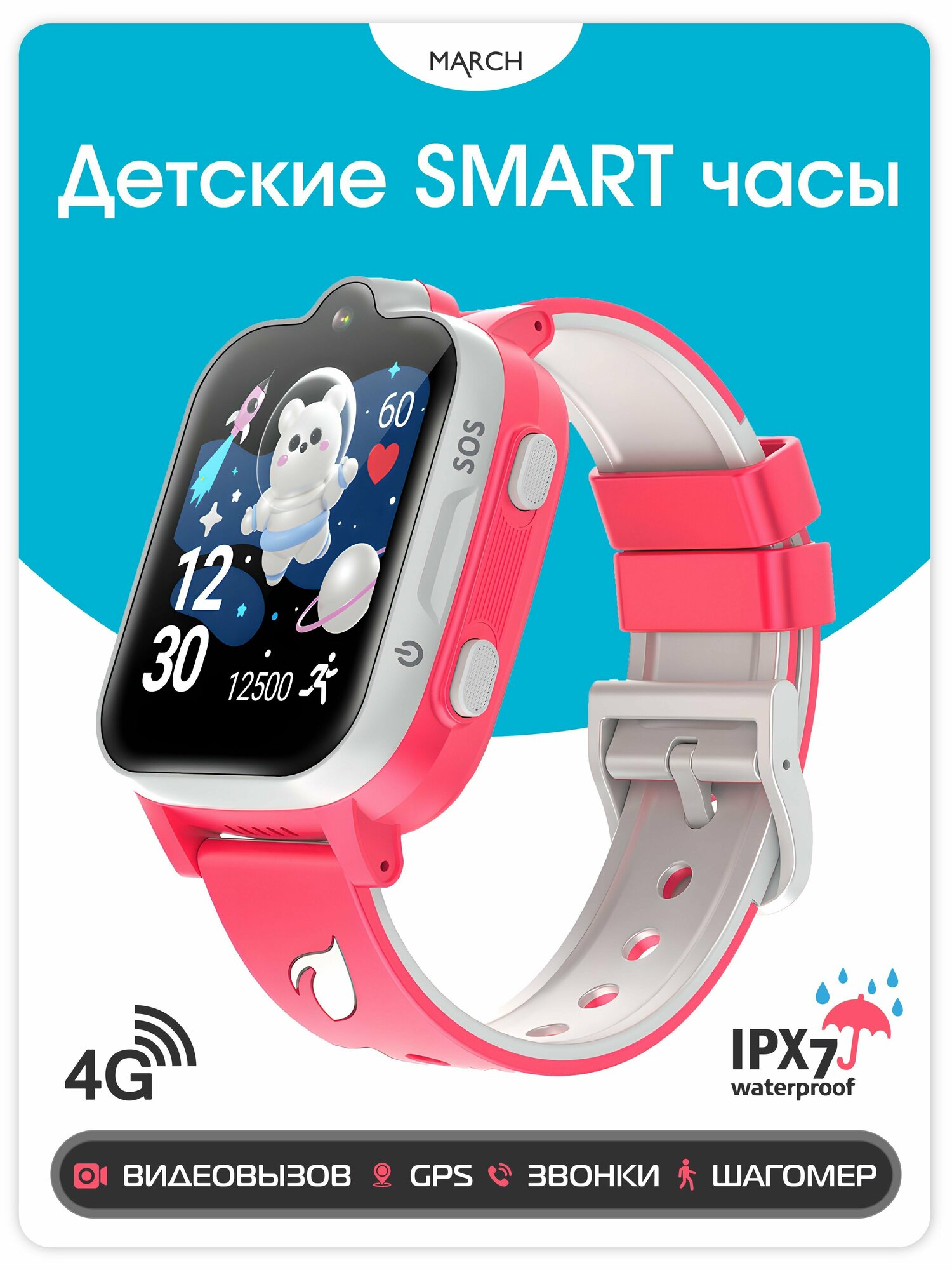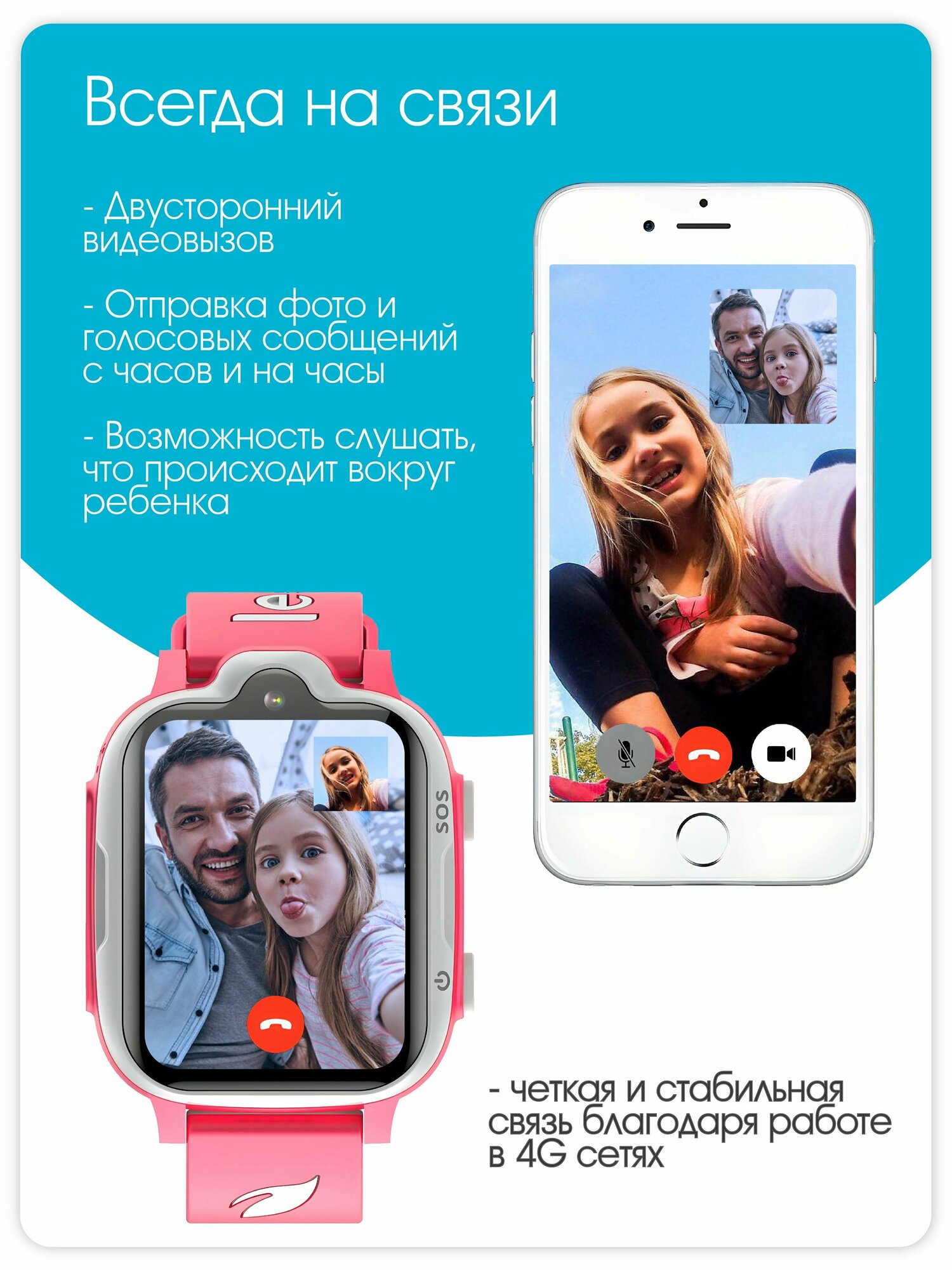 Детские смарт-часы Leef Stellar, 4G, GPS, видеозвонок, геозоны, SOS, IP67, 750 мАч, роз/бел