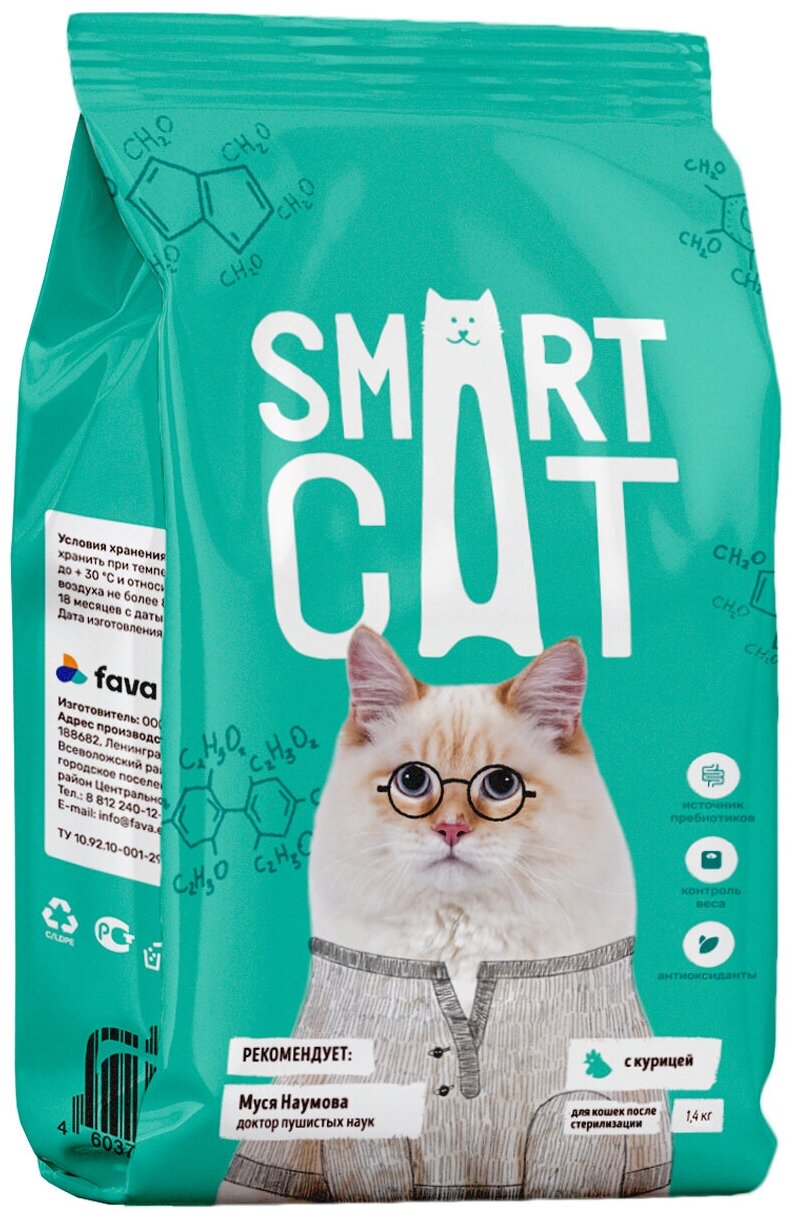 Корм Smart Cat для стерилизованных кошек, с курицей, 1.4 кг